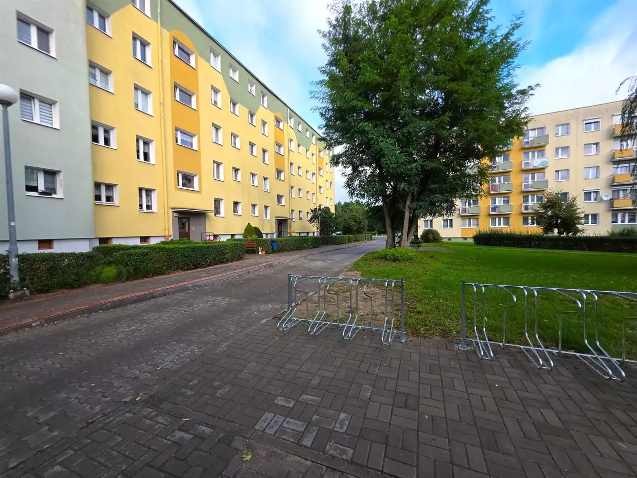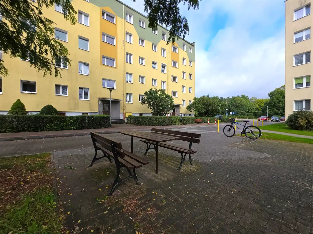 Poza dużym parkingiem dla aut osobowych, w pobliżu jest parking dla rowerów, mini siłownia, piaskownica.