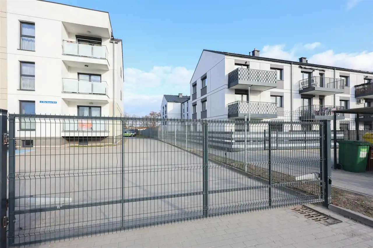 Teren wokół budynku ogrodzony. Parking tylko dla właścicieli mieszkań. Brama wjazdowa otwierana zdalnie.