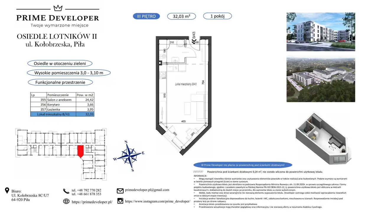 - Charakterystyka mieszkania 32.03 m2, 1 pokój