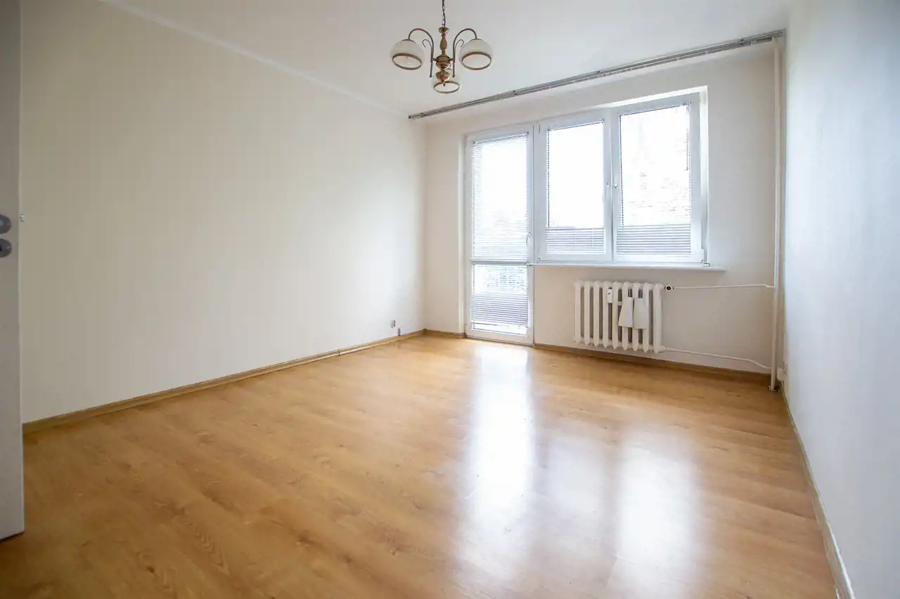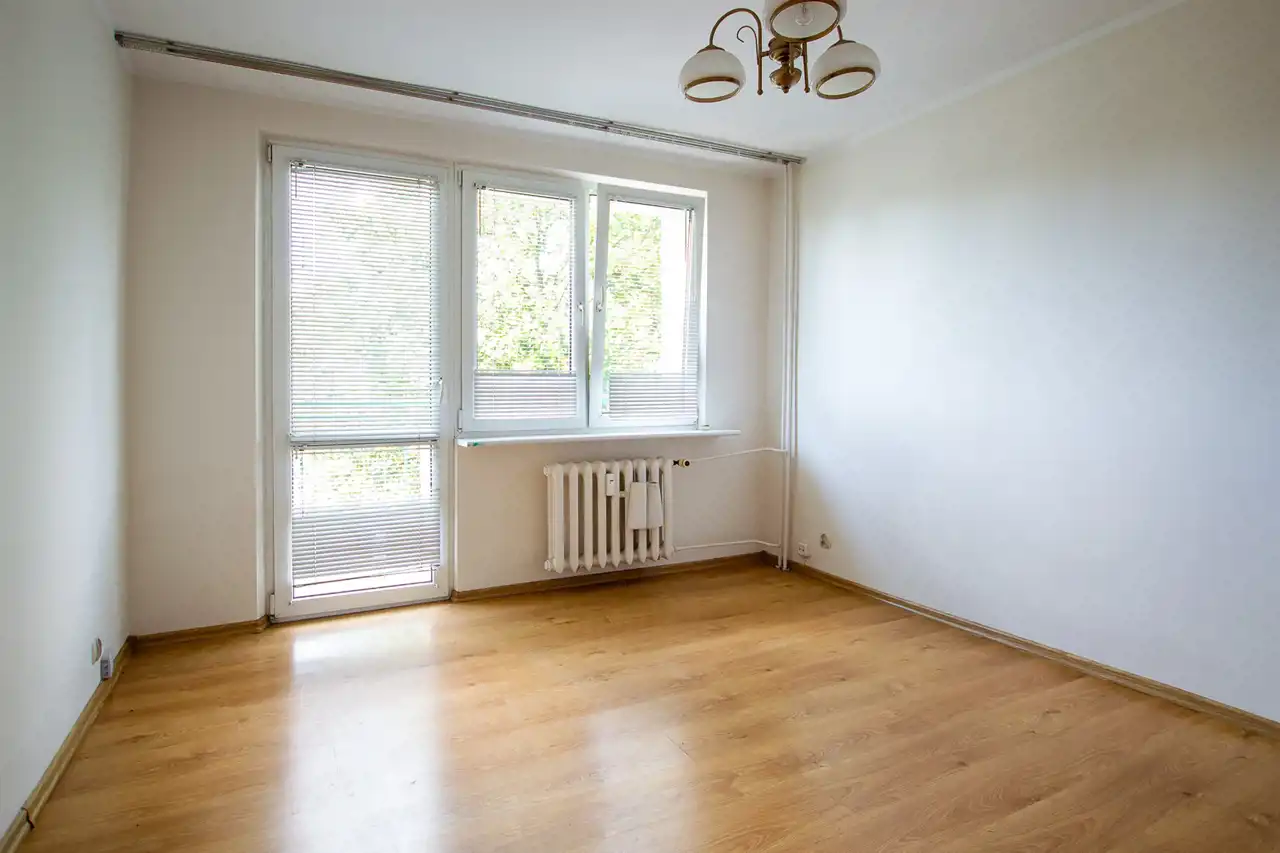 W pokojach panele podłogowe. Ściany szpachlowane i świeżo wymalowane.