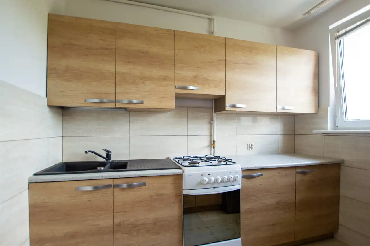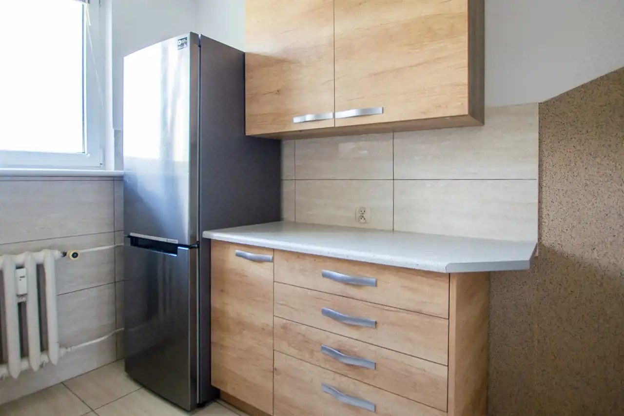 a także wodno-kanalizacyjną w kuchni i łazience. W łazience wymieniono również płytki, zainstalowano kabinę prysznicową i szafki pod wymiar.