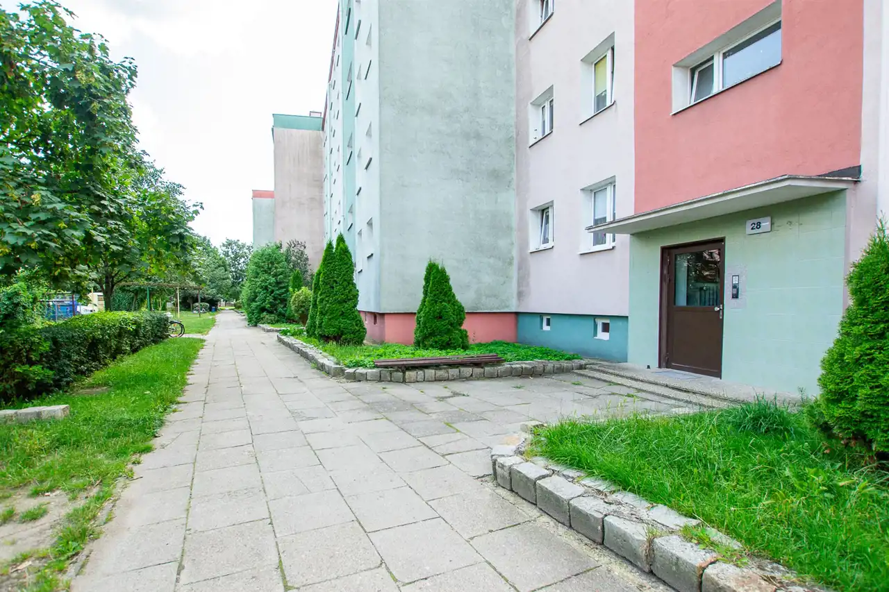 Przy budynku są miejsca parkingowe, plac zabaw dla dzieci.