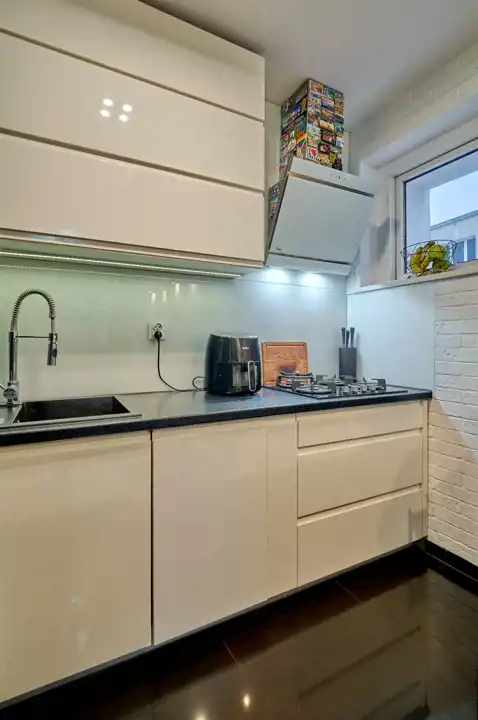 Kuchnia z oknem to ogromny atut mieszkania. Naturalne światło i wentylacja znacząco podnoszą komfort użytkowania.
