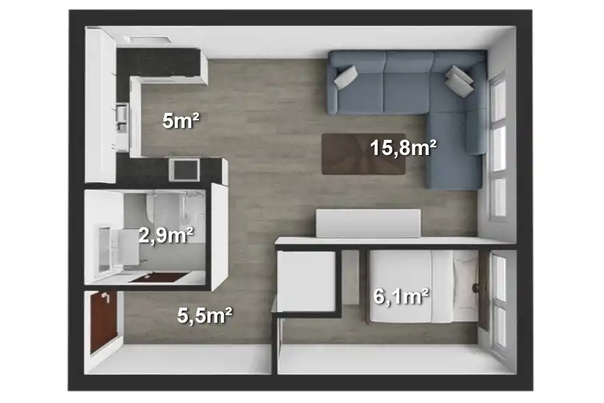 - Charakterystyka mieszkania 35.29 m2, 2 pokoje