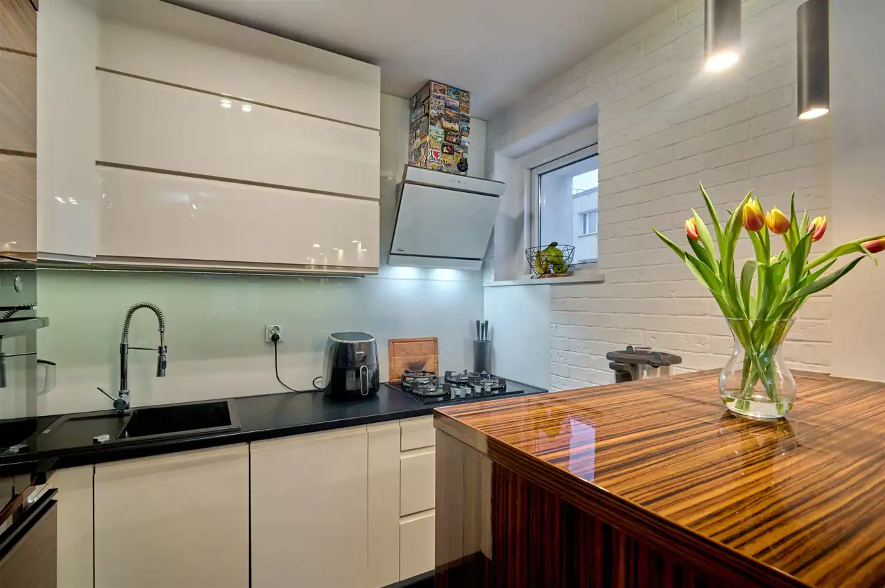 Kuchnia z oknem to ogromny atut mieszkania. Naturalne światło i wentylacja znacząco podnoszą komfort użytkowania.