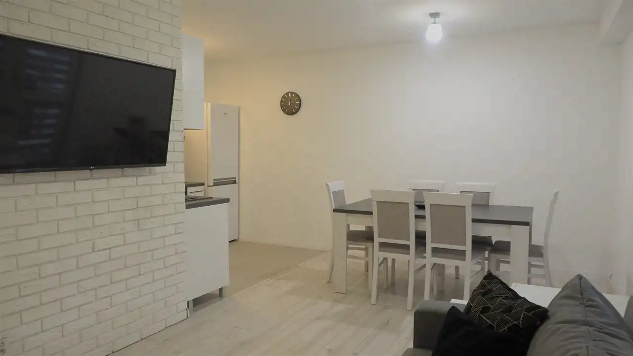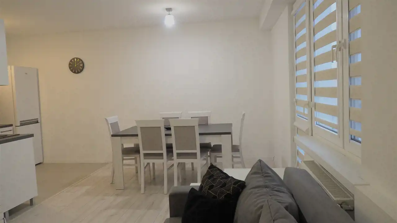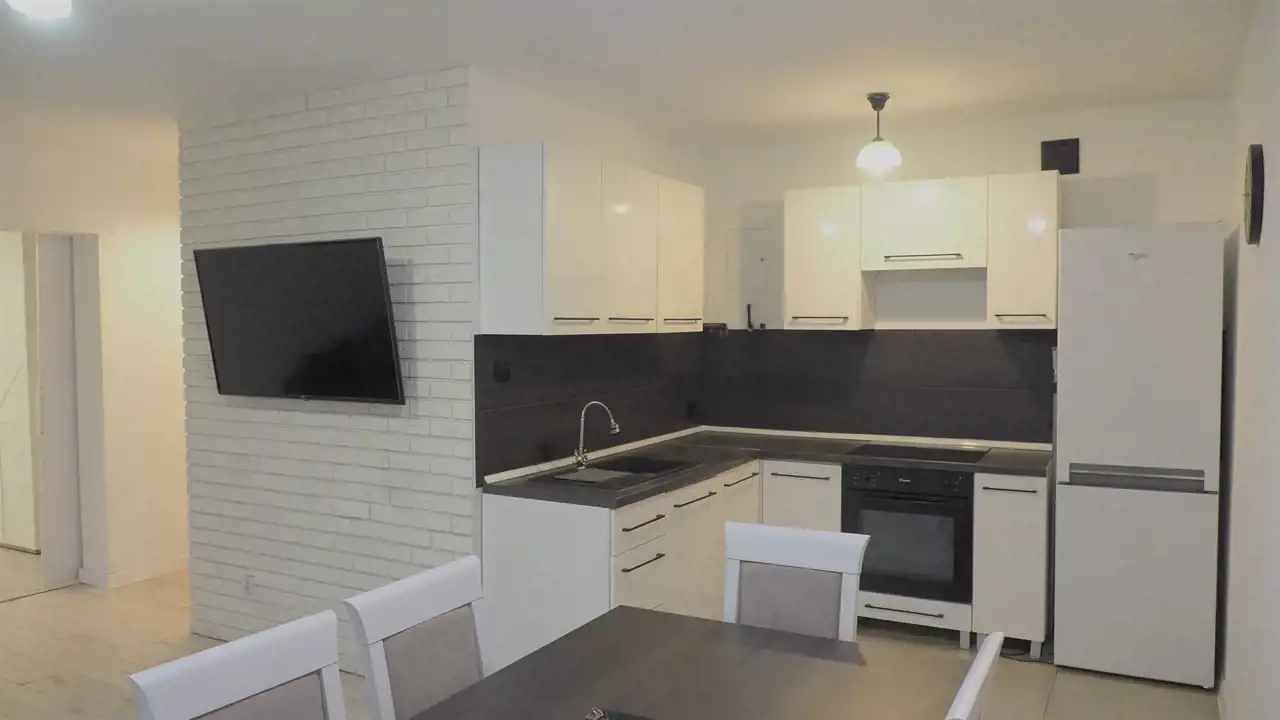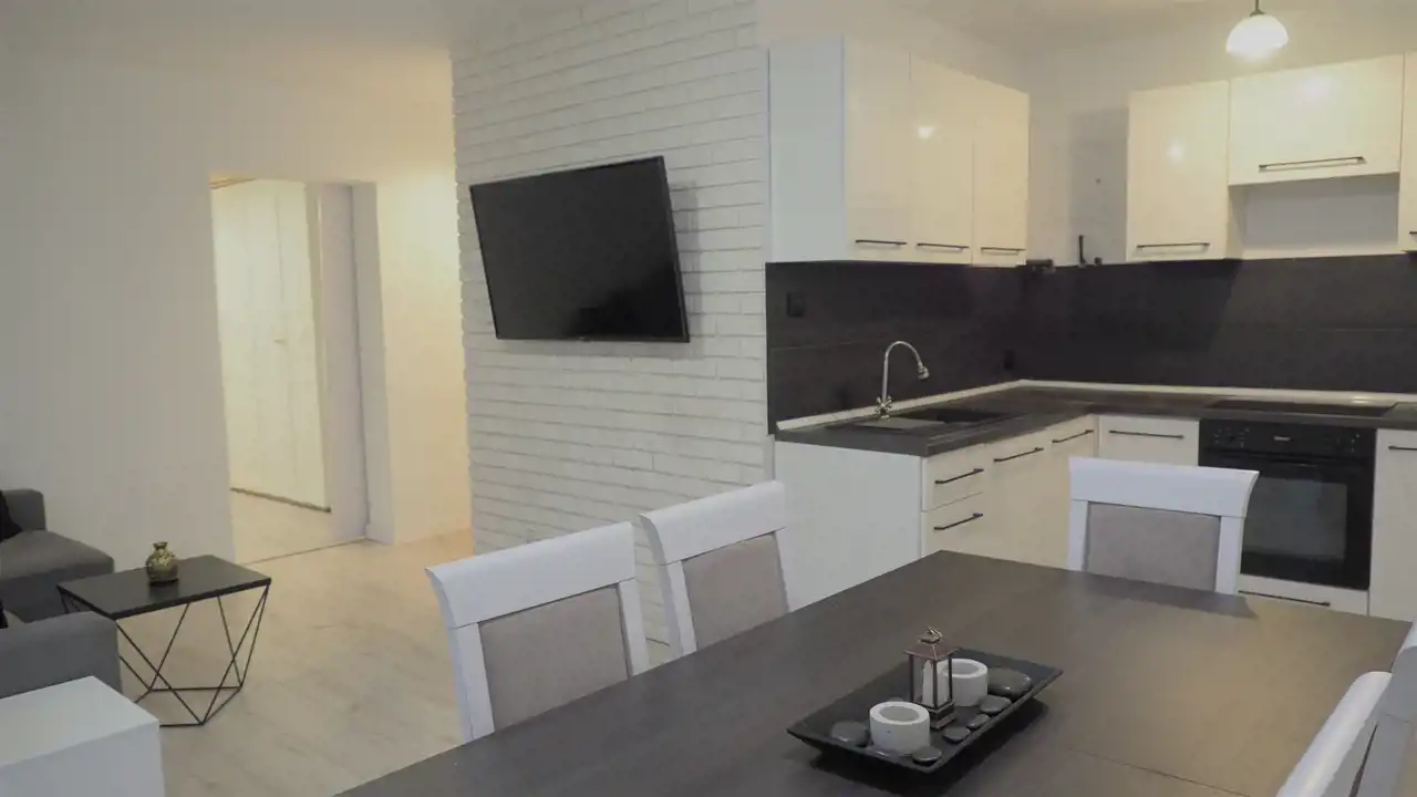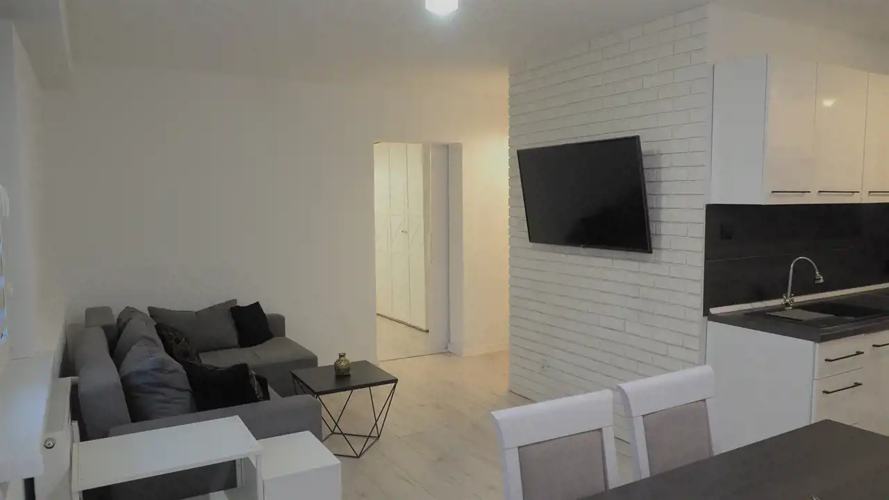 - salon z wyjściem na balkon, z narożnikiem z funkcją spania, telewizor,