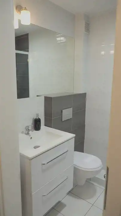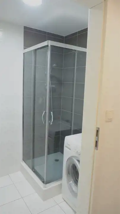 - łazienka z kabiną prysznicową, umywalką, pralką,