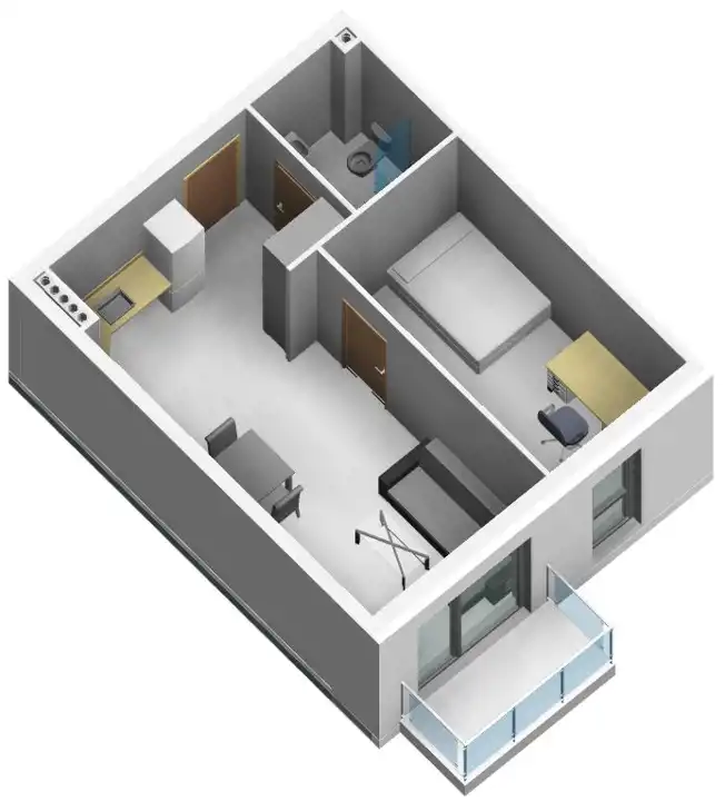 - Charakterystyka mieszkania 39.74 m2, 2 pokoje