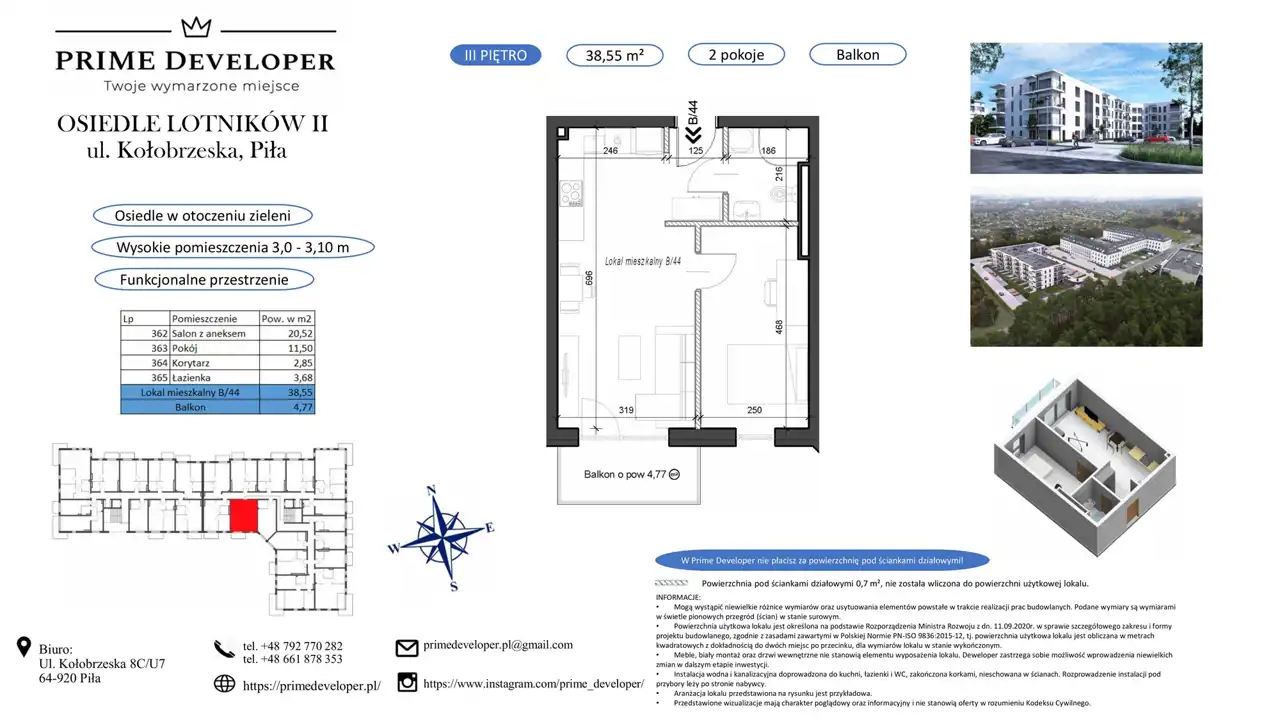 - Charakterystyka mieszkania 38.55 m2, 2 pokoje