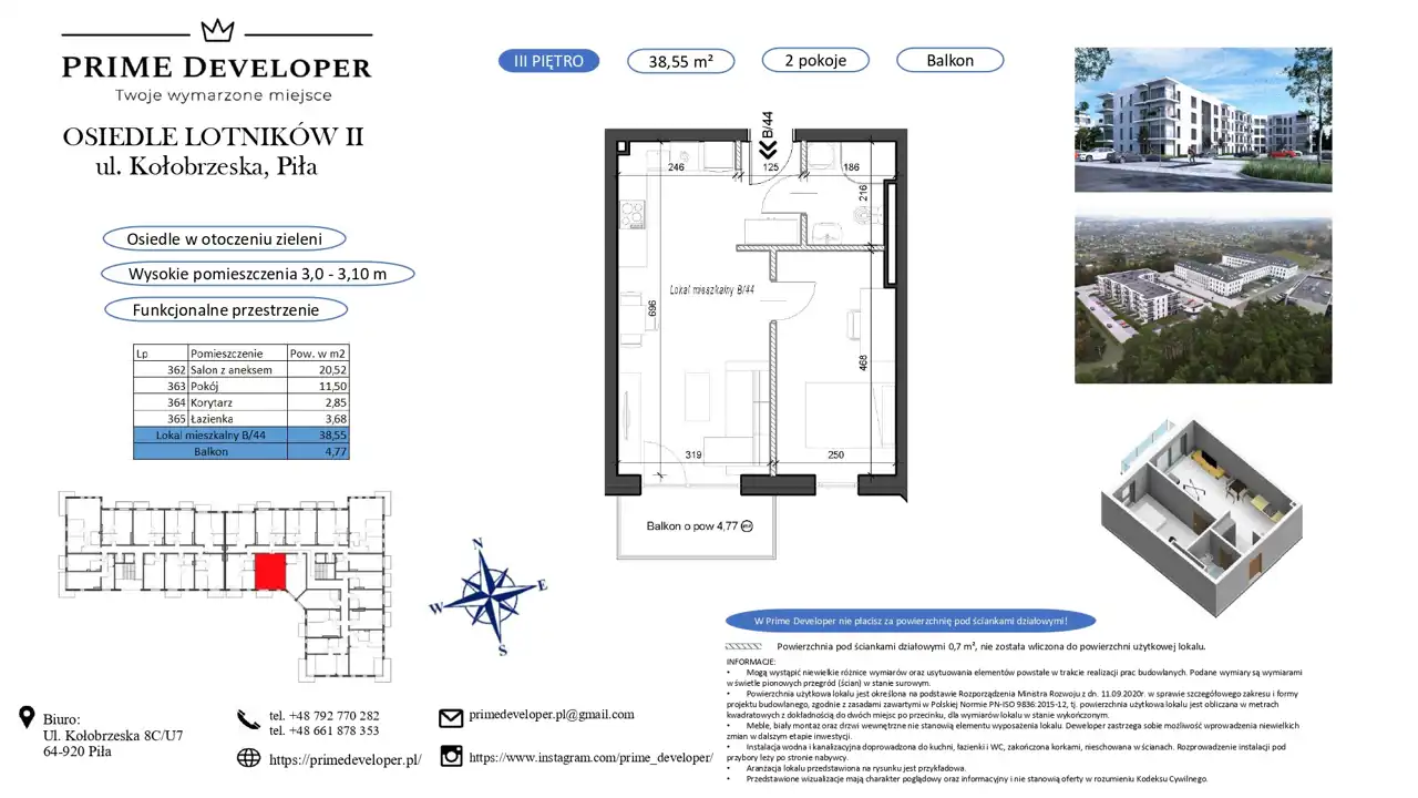 - Charakterystyka mieszkania 38.55 m2, 2 pokoje