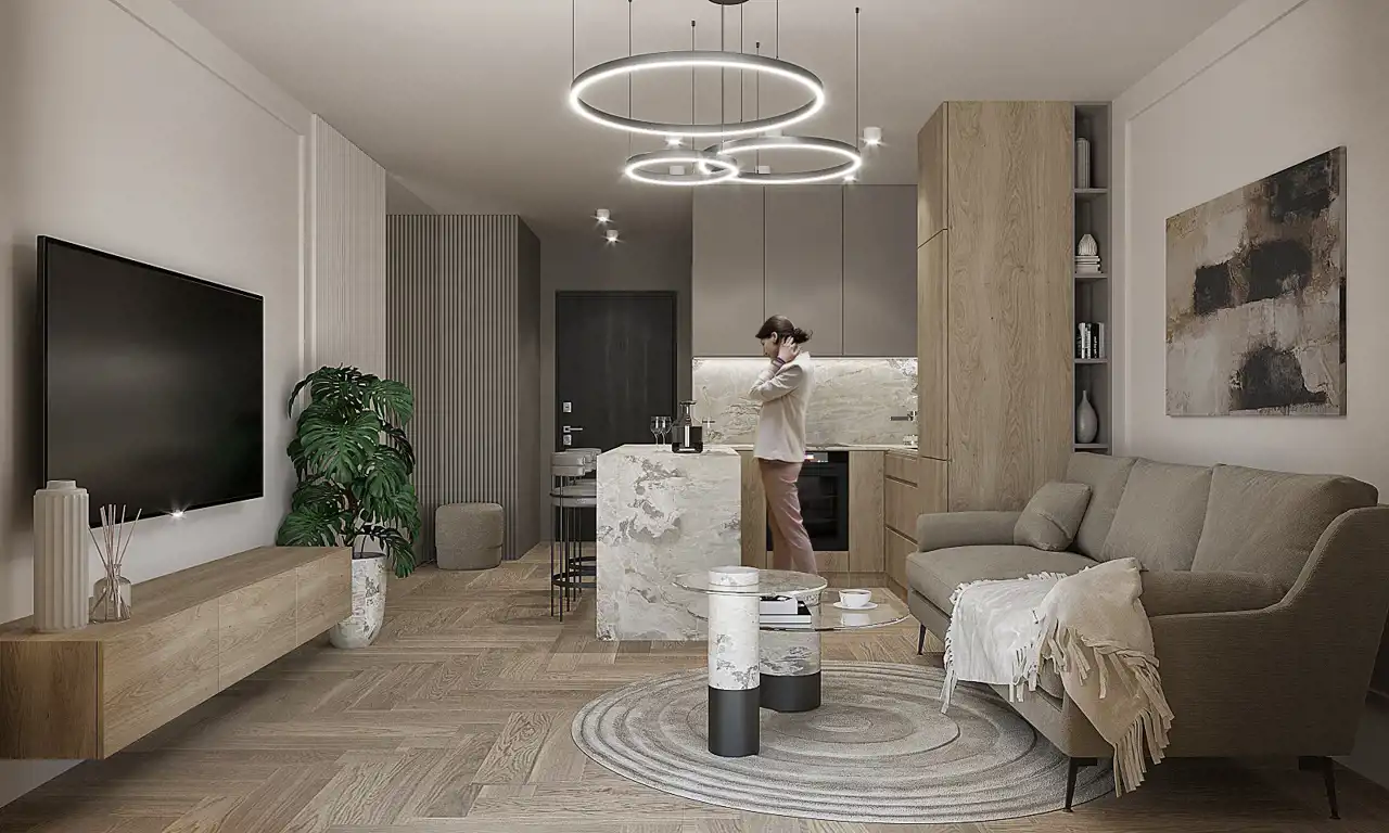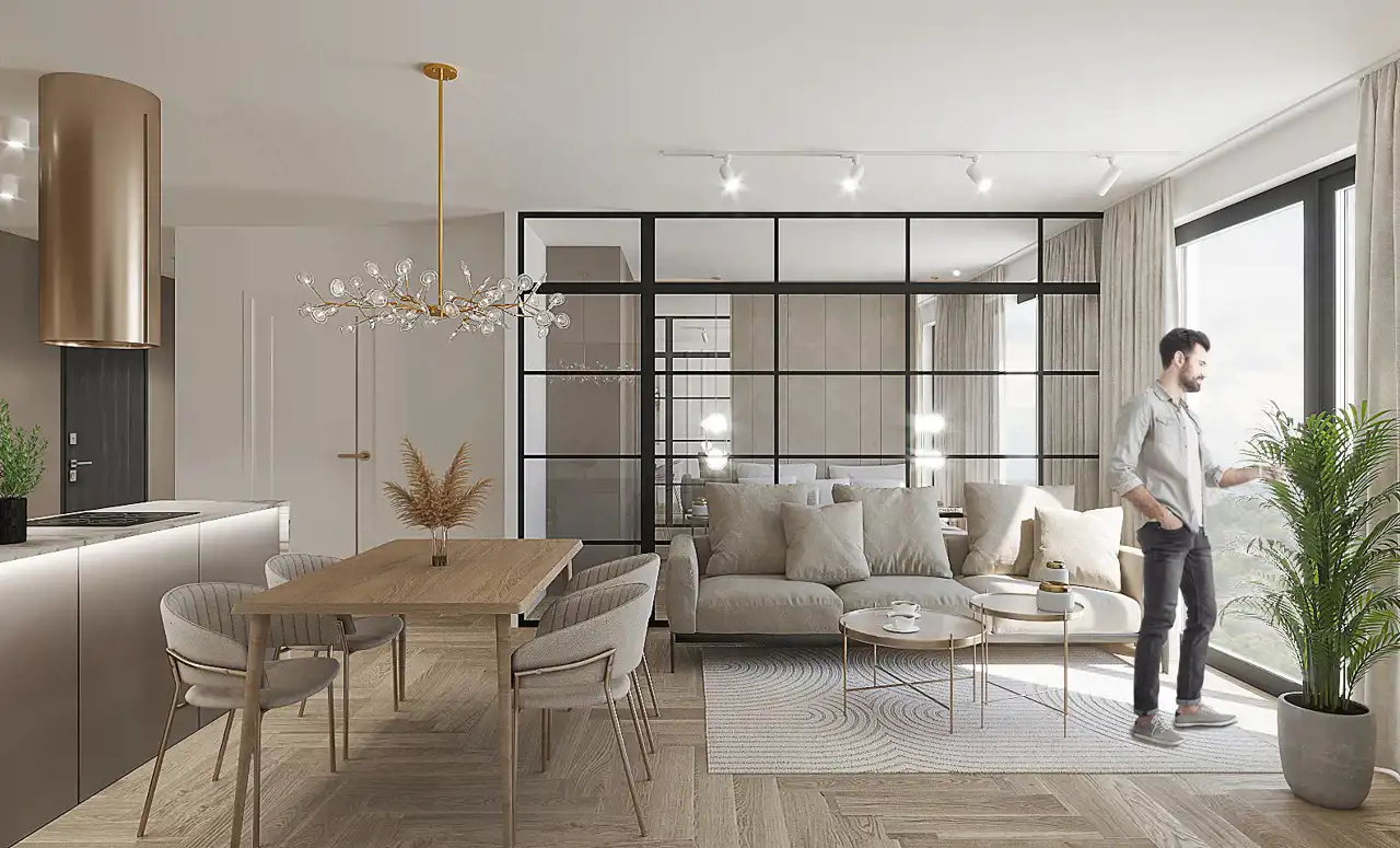 Mieszkanie wyróżnia się bardzo dobrym rozkładem pomieszczeń oraz wysokimi sufitami (3,0–3,10 m), które potęgują poczucie przestrzeni i komfortu. Duże przeszklenia zapewniają doskonałe doświetlenie wnętrza. W całym mieszkaniu zastosowano ogrzewanie podłogowe, co zwiększa wygodę użytkowania.