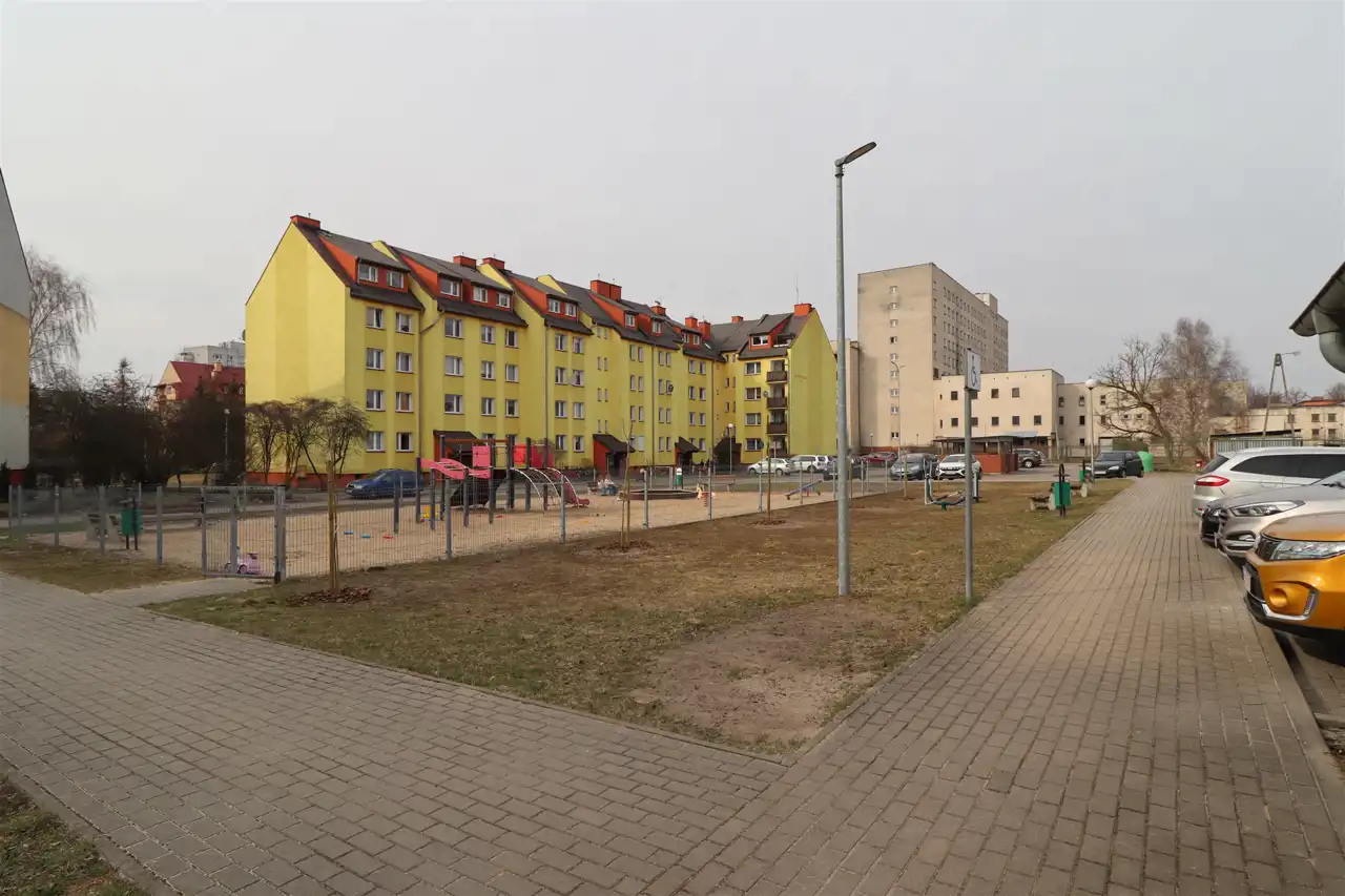 Budynek usytuowany jest na spokojnym osiedlu, a na jego dziedzińcu znajduje się ogrodzony plac zabaw, co czyni lokalizację przyjazną dla rodzin.