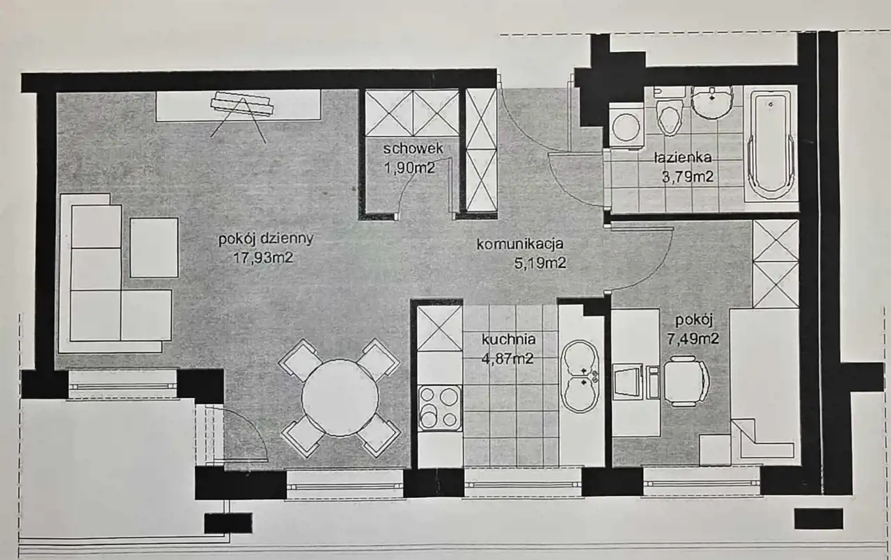 - Charakterystyka mieszkania 41.17 m2, 2 pokoje