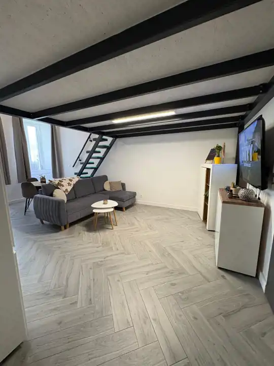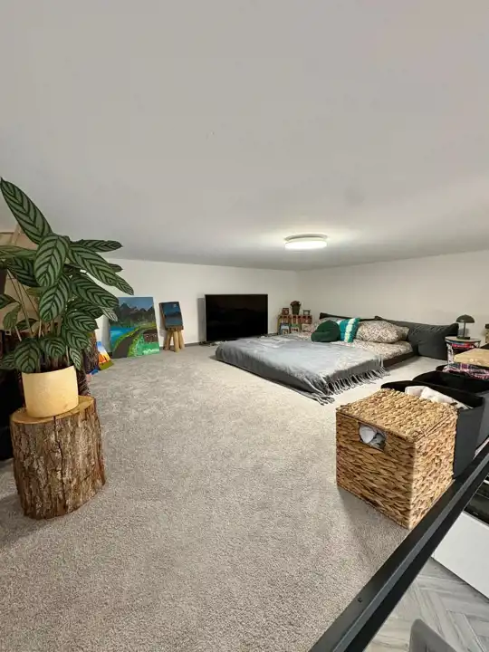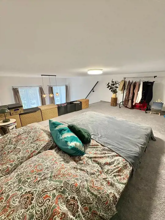 Nowoczesna kawalerka o powierzchni 38 m² z antresolą (ok. 10 m²) w budynku z 2022 roku przy ul. Kołobrzeskiej w Pile. Wysokie na 3,5 m wnętrze tworzy przestronną, industrialną atmosferę.