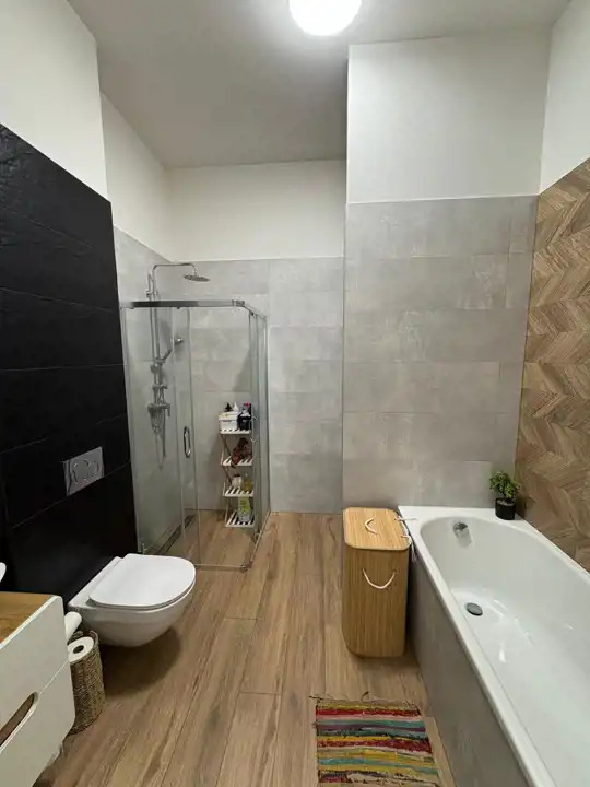 Przestronna łazienka (11,07 m²) oferuje zarówno prysznic, jak i wannę, zapewniając maksymalny komfort.
