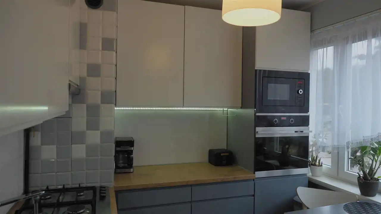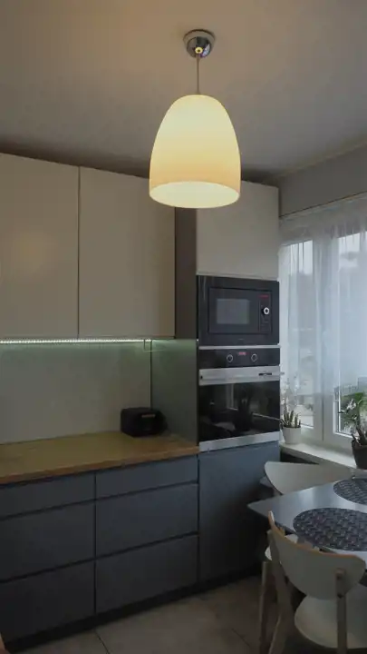 W cenie mieszkania pozostaje zabudowa kuchenna wraz ze zmywarką, płytą gazową, piekarnikiem i mikrofalą, reszta wyposażenia do uzgodnienia z właścicielem.