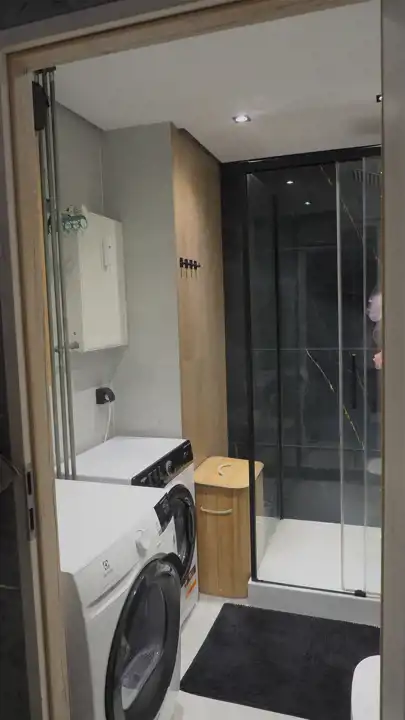 - łazienka z WC wyposażona w kabinę prysznicową,