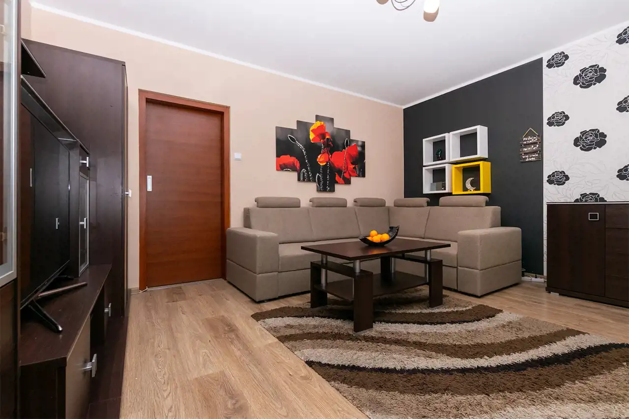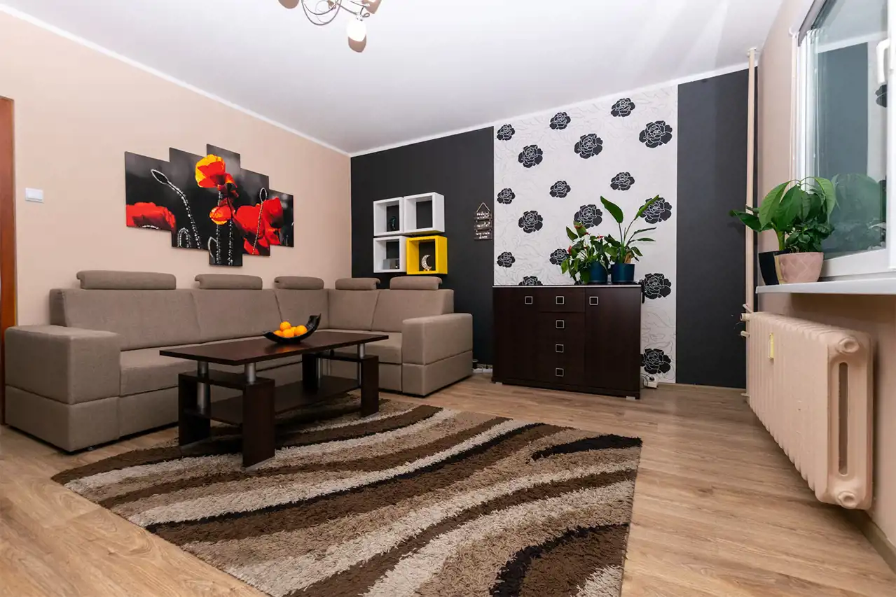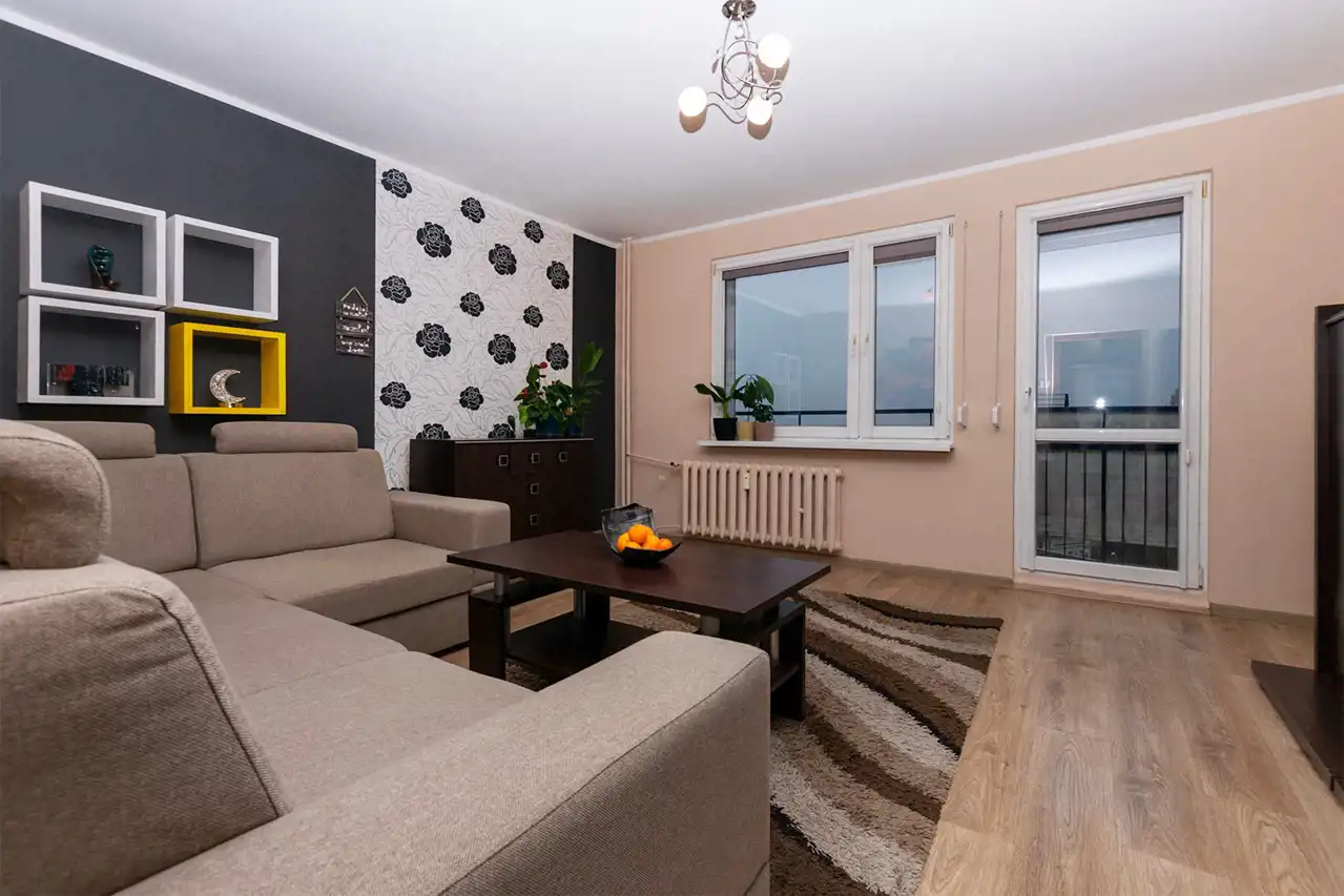 - Historia układu: Mieszkanie pierwotnie 3-pokojowe, przeszło metamorfozę, tworząc wygodną, otwartą przestrzeń i bardzo funkcjonalne wnętrze.