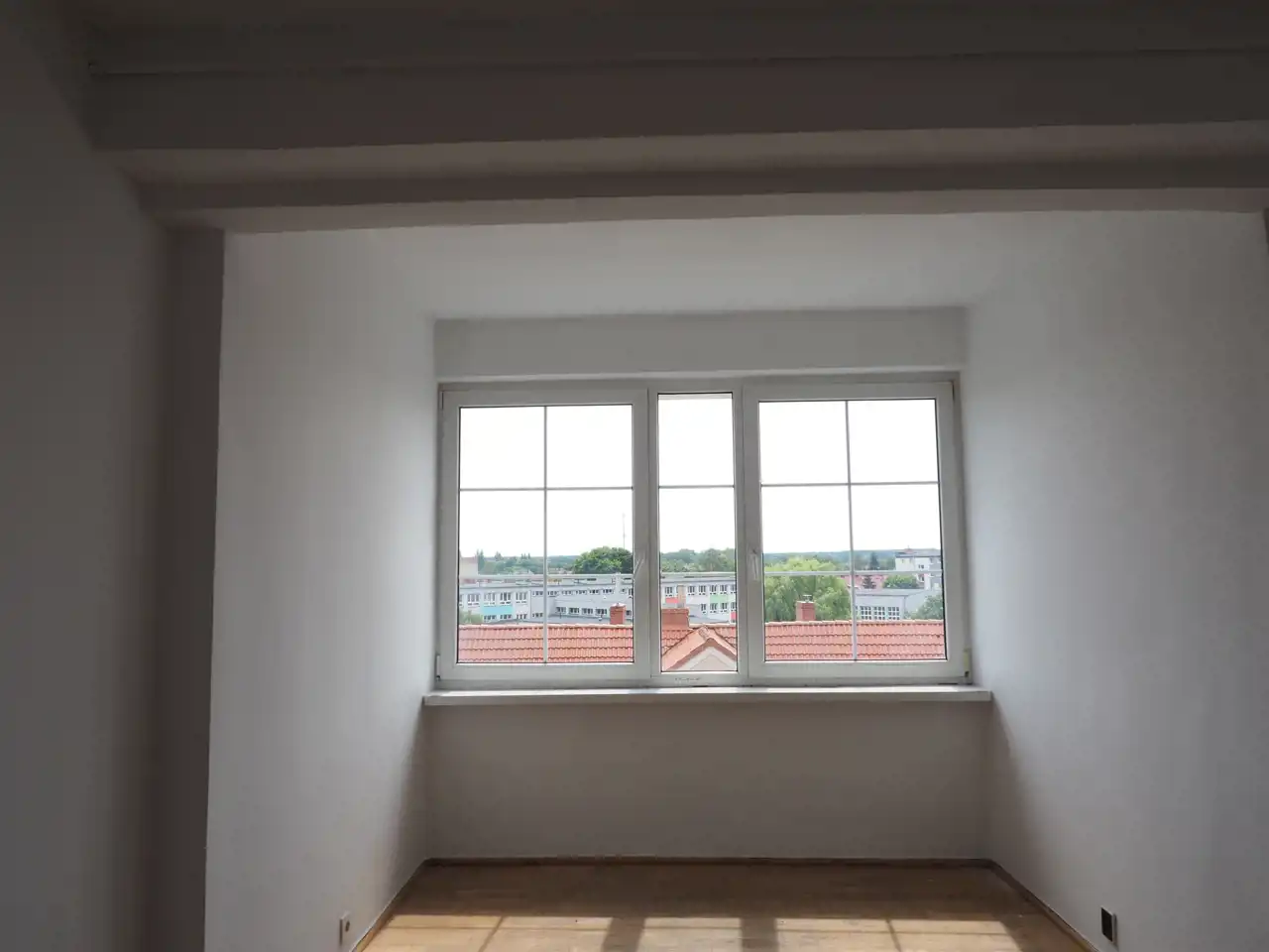 Okna stare drewniane ( jedno okno PCV ) na podłogach parkiet, ściany gipsowane malowane.