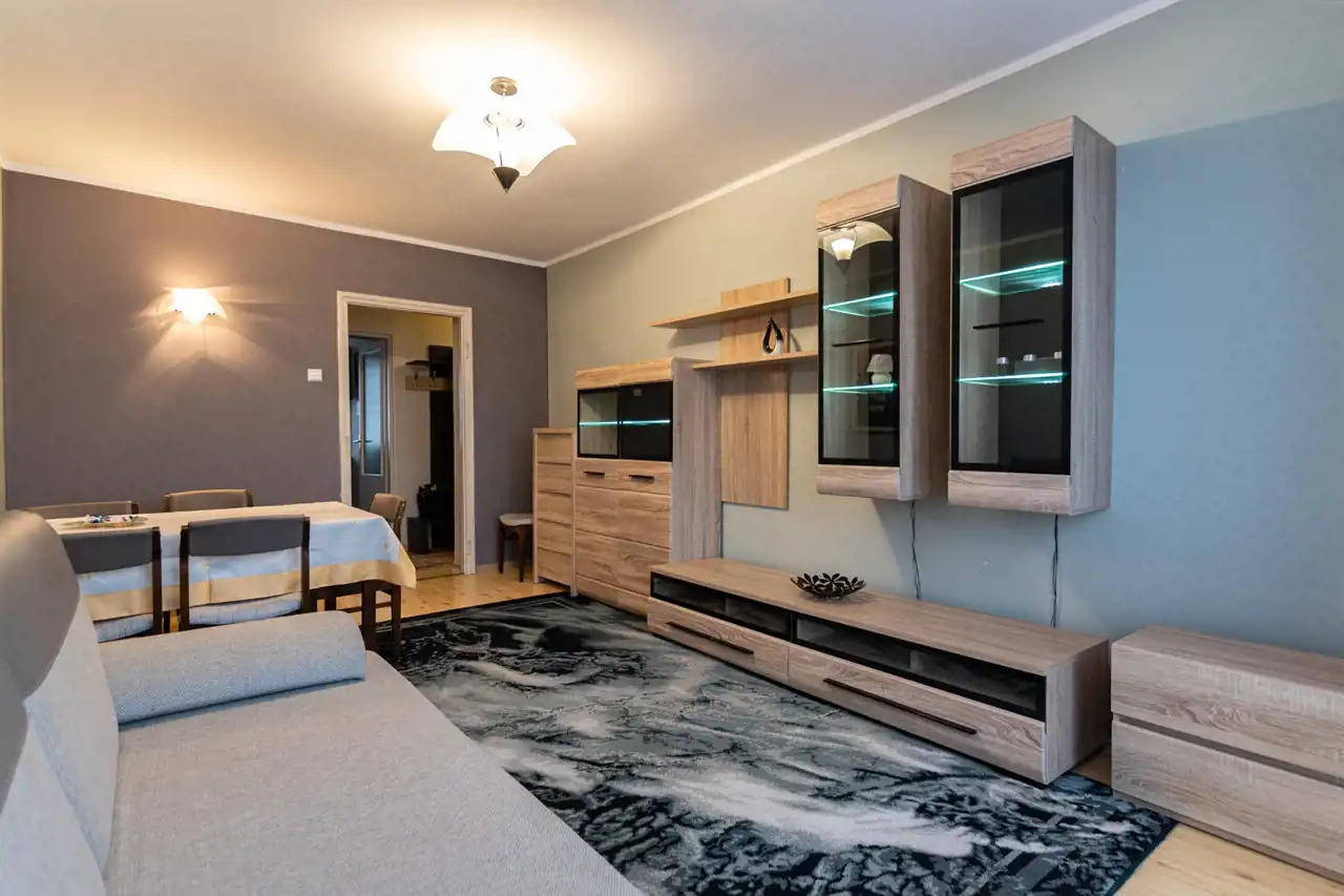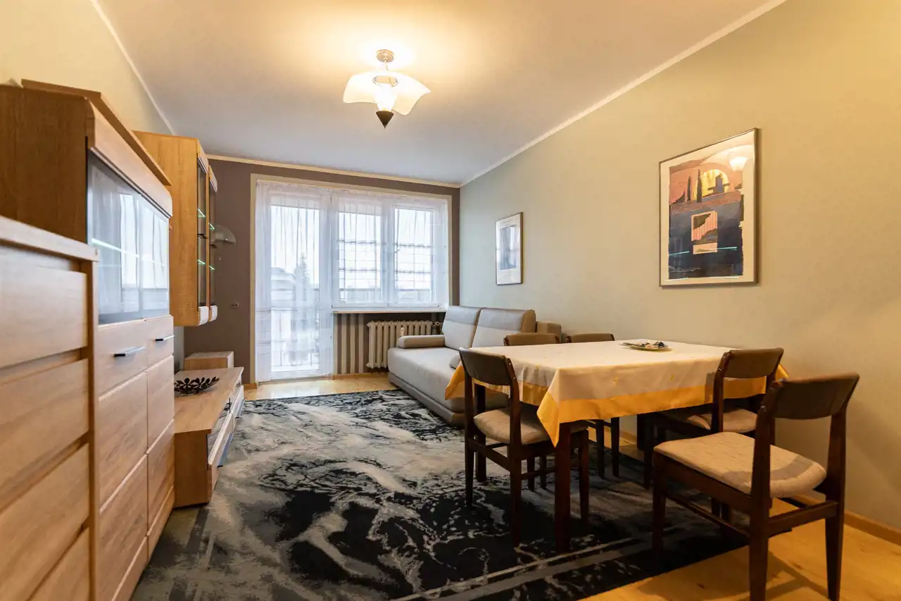 Mieszkanie sprzedawane z pełnym umeblowaniem widocznym na zdjęciach – gotowe do zamieszkania bez dodatkowych nakładów.