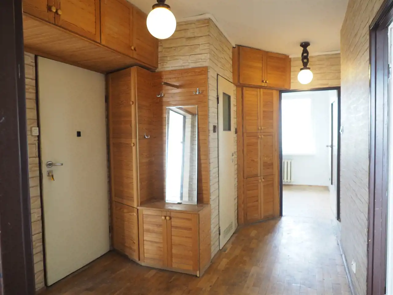 Pokoje nie wymagają odświeżenia: okna drewniane (jedno wymienione na PCV), na podłogach parkiet, ściany gipsowane i malowane.