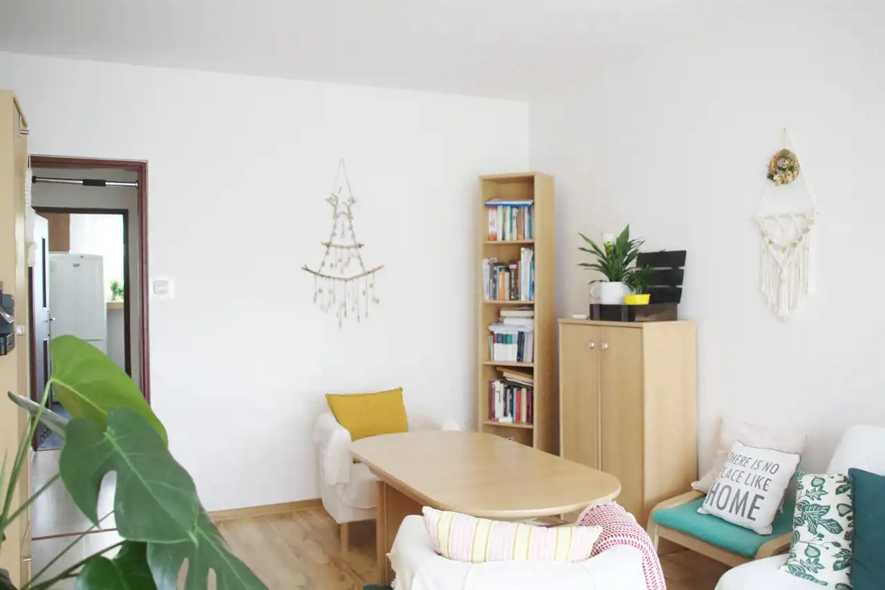 Wokół bloku rośnie dużo zieleni, a okolica jest cicha i spokojna.