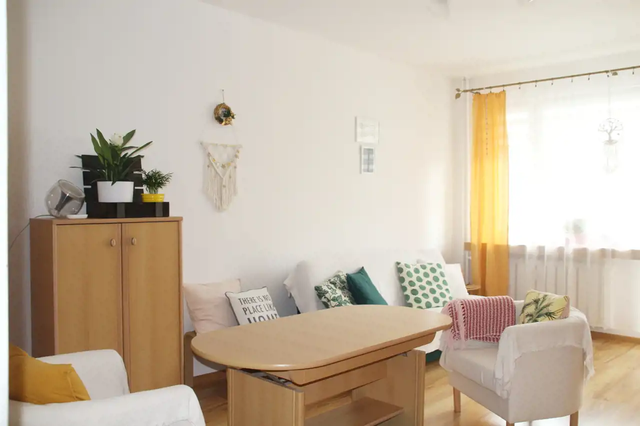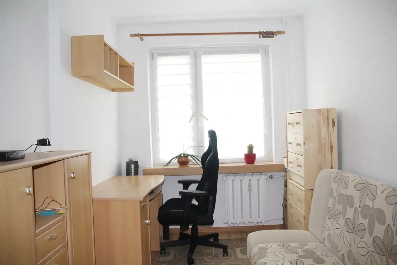 Mieszkanie posiada ustawne pokoje i dużą kuchnię oraz łazienkę, a także spory balkon i przestronną piwnicę.