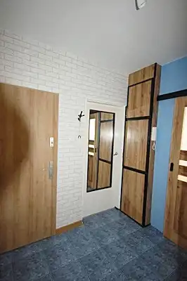 W przedpokoju w cenie pozostaje zabudowana szafa typu komandor.