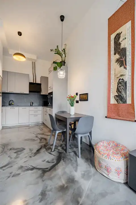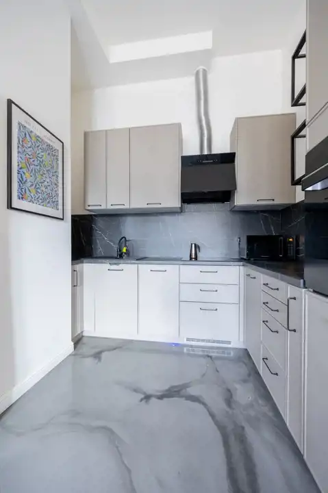 - Wysoki standard wykończenia: nowoczesny design, wysokie sufity dające poczucie przestrzeni i duże okna zapewniające dużo naturalnego światła.
