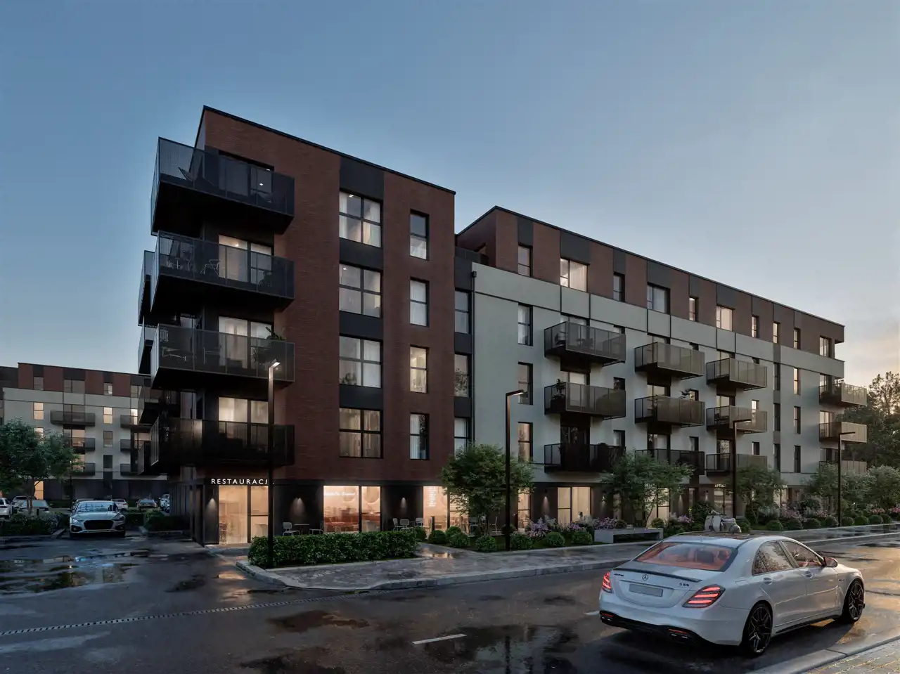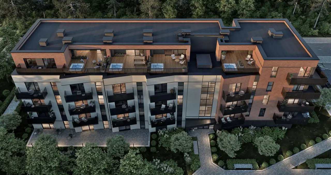 Inwestycja obejmuje dwa nowoczesne budynki wielorodzinne z podziemną halą garażową. W pierwszym etapie deweloper oferuje 34 mieszkania w szerokiej gamie metraży i układów oraz 6 lokali usługowych. Znajdą tu Państwo lokale od 34 m² (idealne kawalerki i studia) poprzez komfortowe 2- i 3-pokojowe mieszkania rodzinne, aż po luksusowe, duże apartamenty dwupoziomowe z prywatnym tarasem i jacuzzi. Deweloper stawia na jakość wykonania oraz komfort, co potwierdza dbałość o detale architektoniczne i dużą ilość zieleni w projekcie osiedla, co zapewnia spójność z otoczeniem.