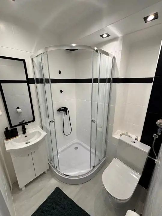 Łazienka : o powierzchni 2,70 m2 - glazura nowego typu ,razem z WC, szafka pod umywalkę, 2 szafki wiszące ,wanna, oświetlenie.