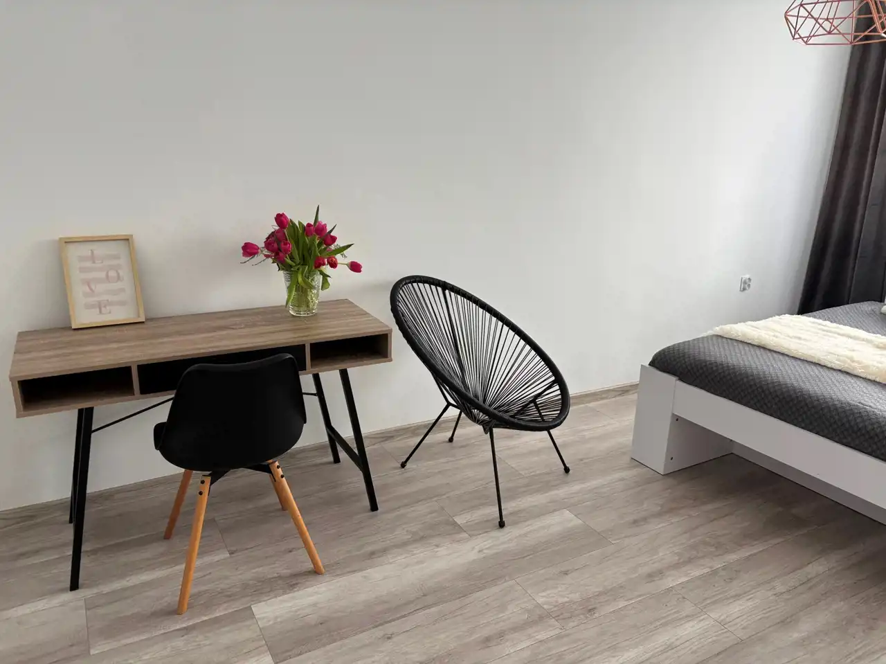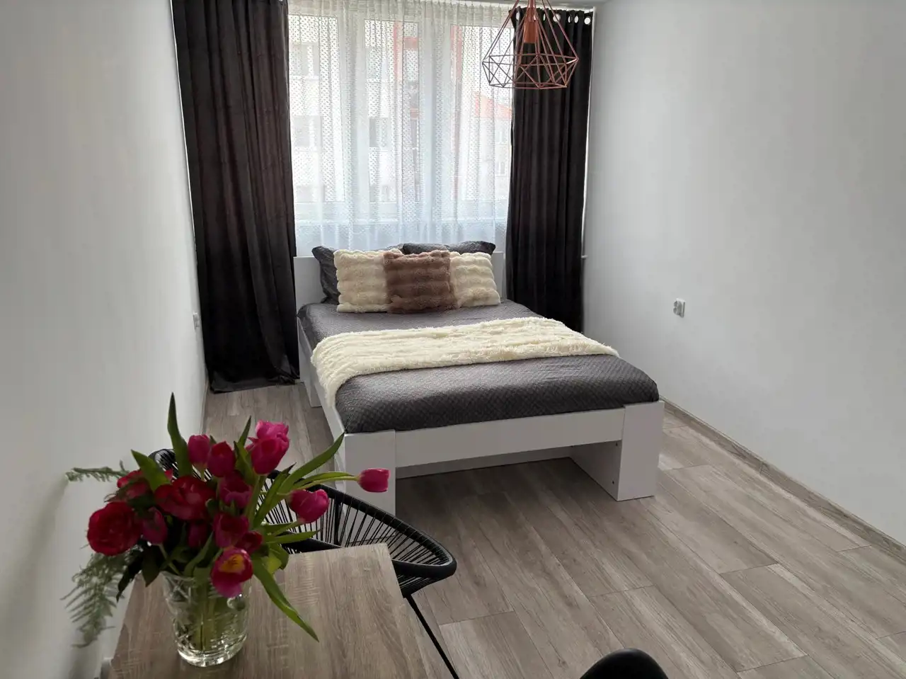 Pokój 2 : o powierzchni 14,50 m2 - ściany gipsowane, malowane. Na podłodze nowe panele podłogowe. Okno PCV.