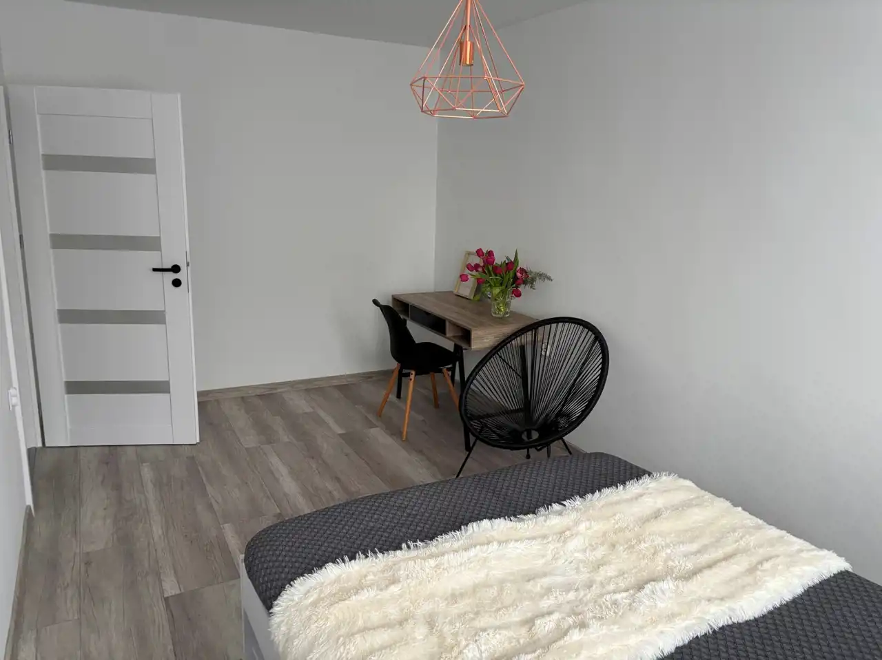 Pokój 1 : o powierzchni 20,90 m2, z wyjściem na balkon - ściany gipsowane, malowane. Na podłodze panele podłogowe. Okna PCV.
