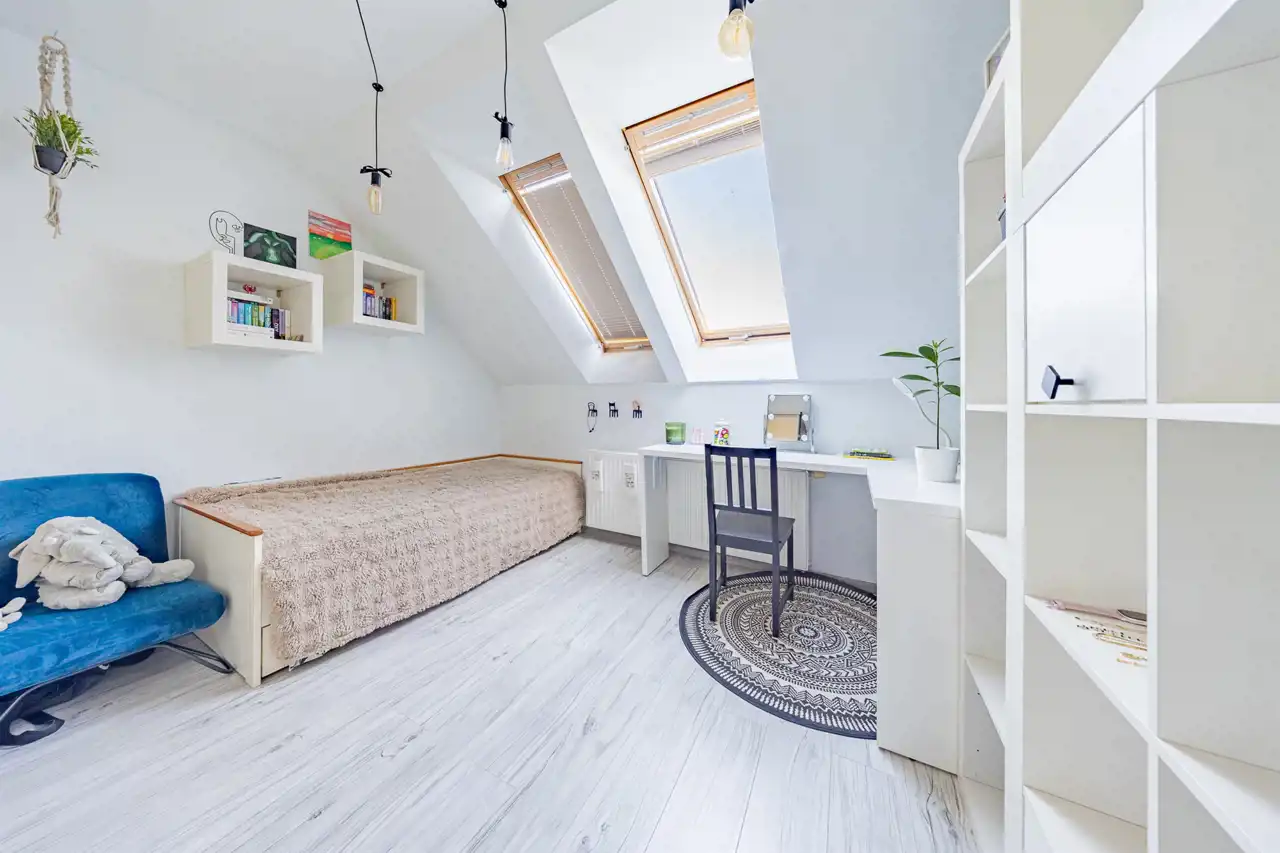 - Pokój (10 m²): idealny na dużą sypialnię lub pokój dla dziecka.