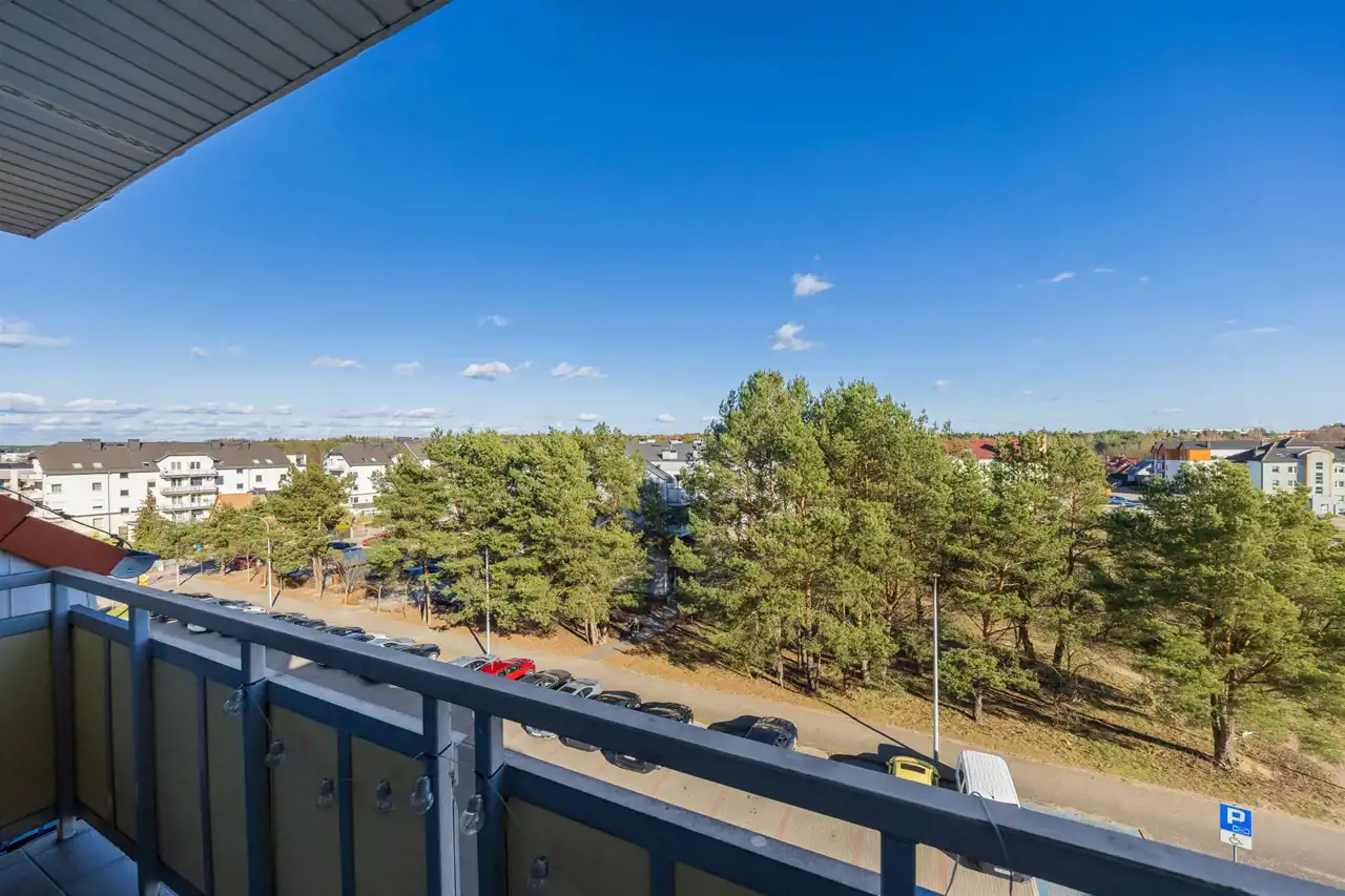 Ogromnym atutem tego mieszkania jest duża loggia z widokiem na zielony skwer porośnięty sosnami. Tutaj nie widzisz okien sąsiadów, tylko cieszysz się intymnością i kojącym widokiem zieleni bezpośrednio z Twojego salonu.