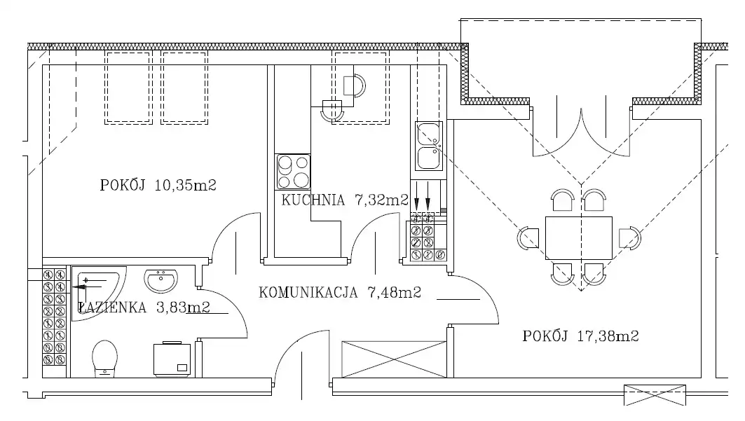 - Charakterystyka mieszkania 46.36 m2, 2 pokoje