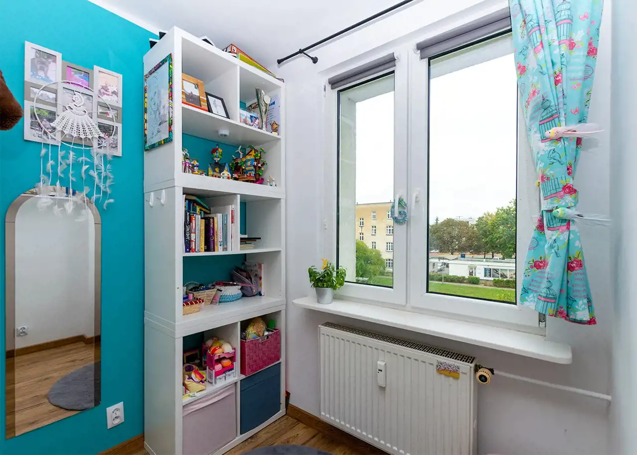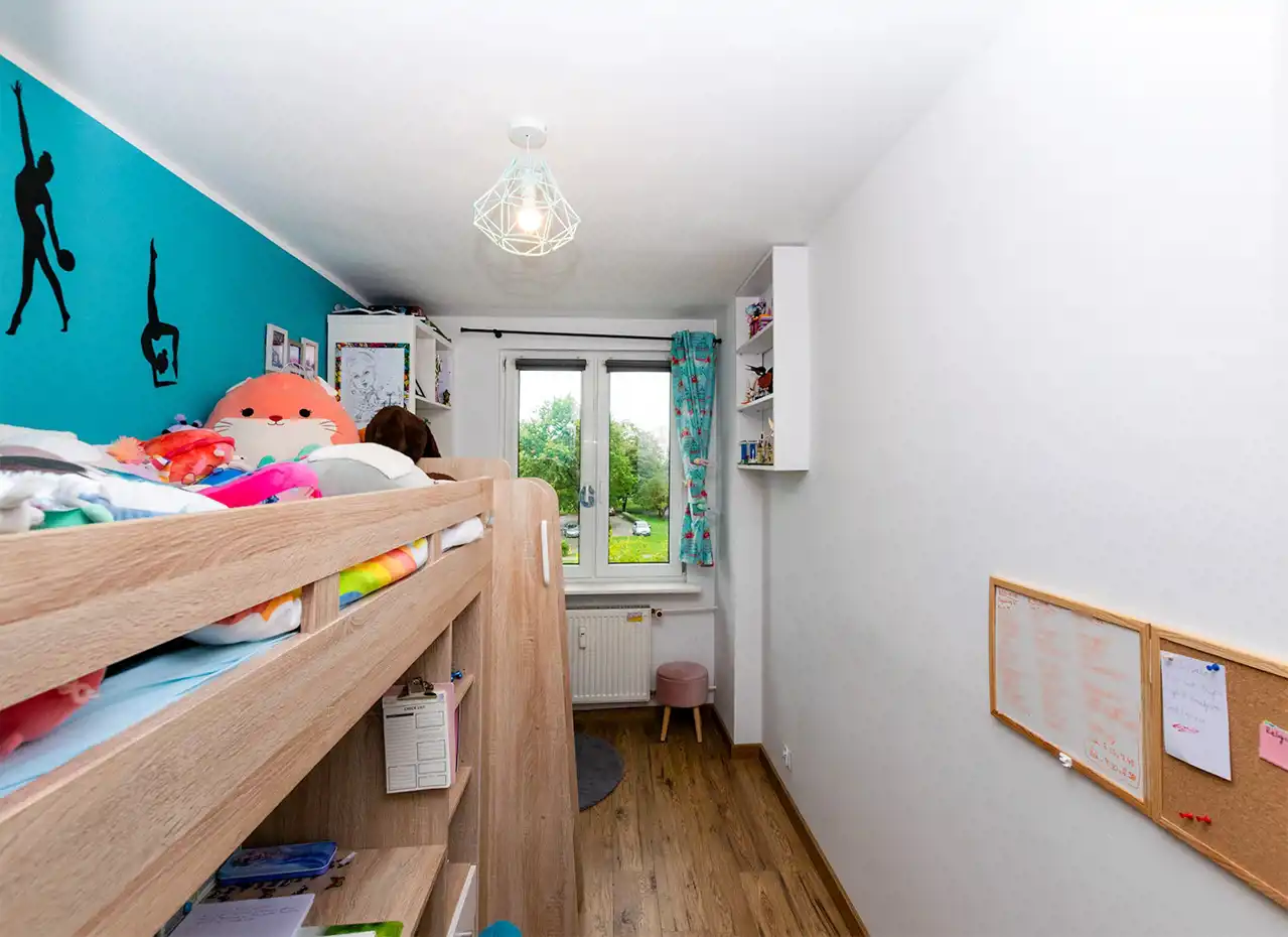 Pokój: 9 m² – funkcjonalny, idealny na gabinet lub pokój dziecięcy,