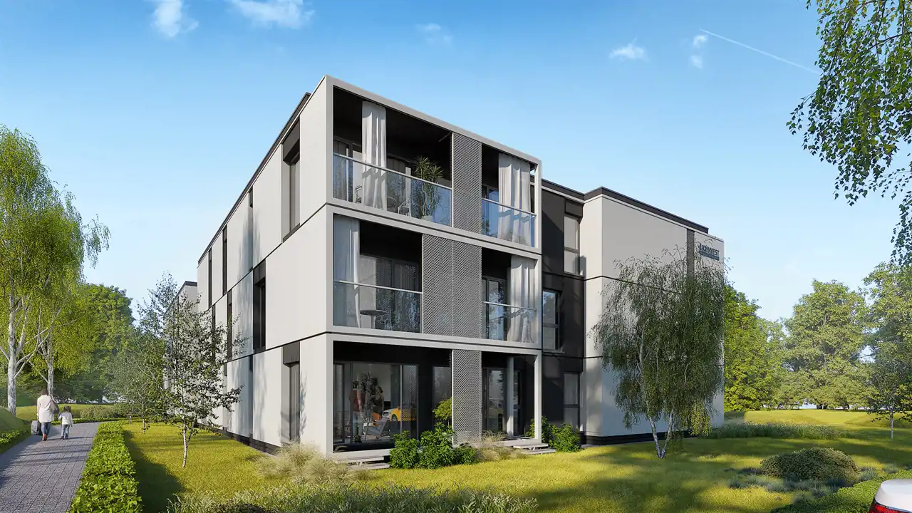 - Dwukondygnacyjny z windą, zapewniający łatwy dostęp do każdego z mieszkań.