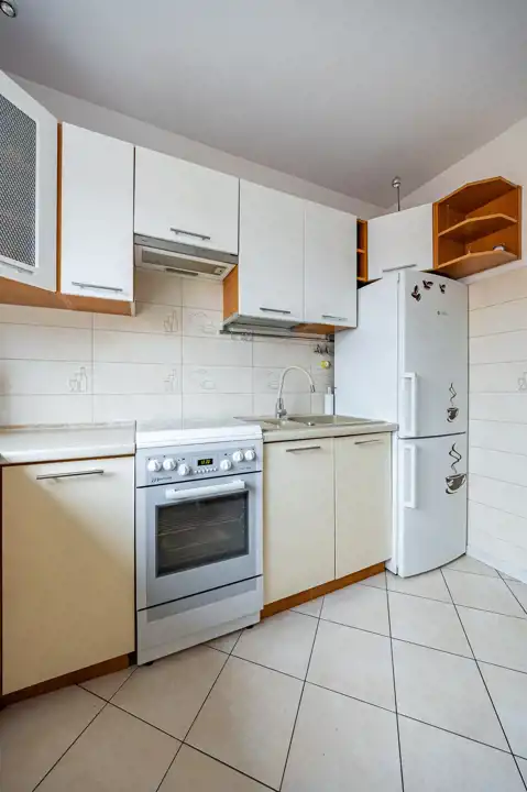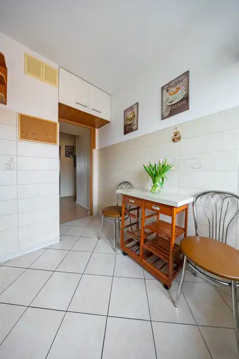 - Oddzielna, jasna kuchnia: z blatem roboczym i miejscem na poranna kawę.