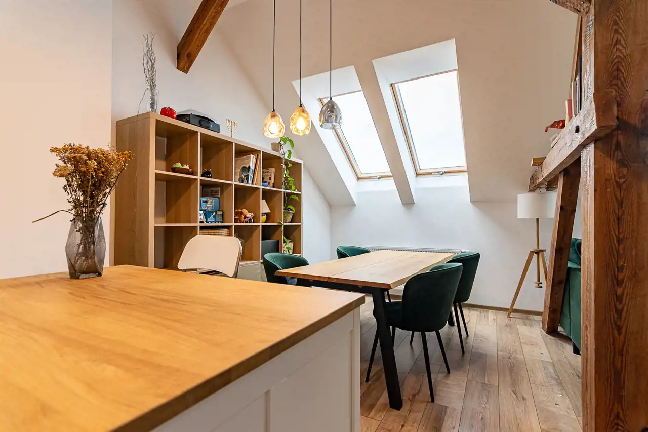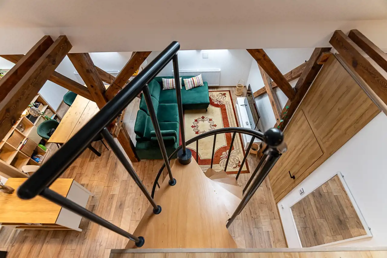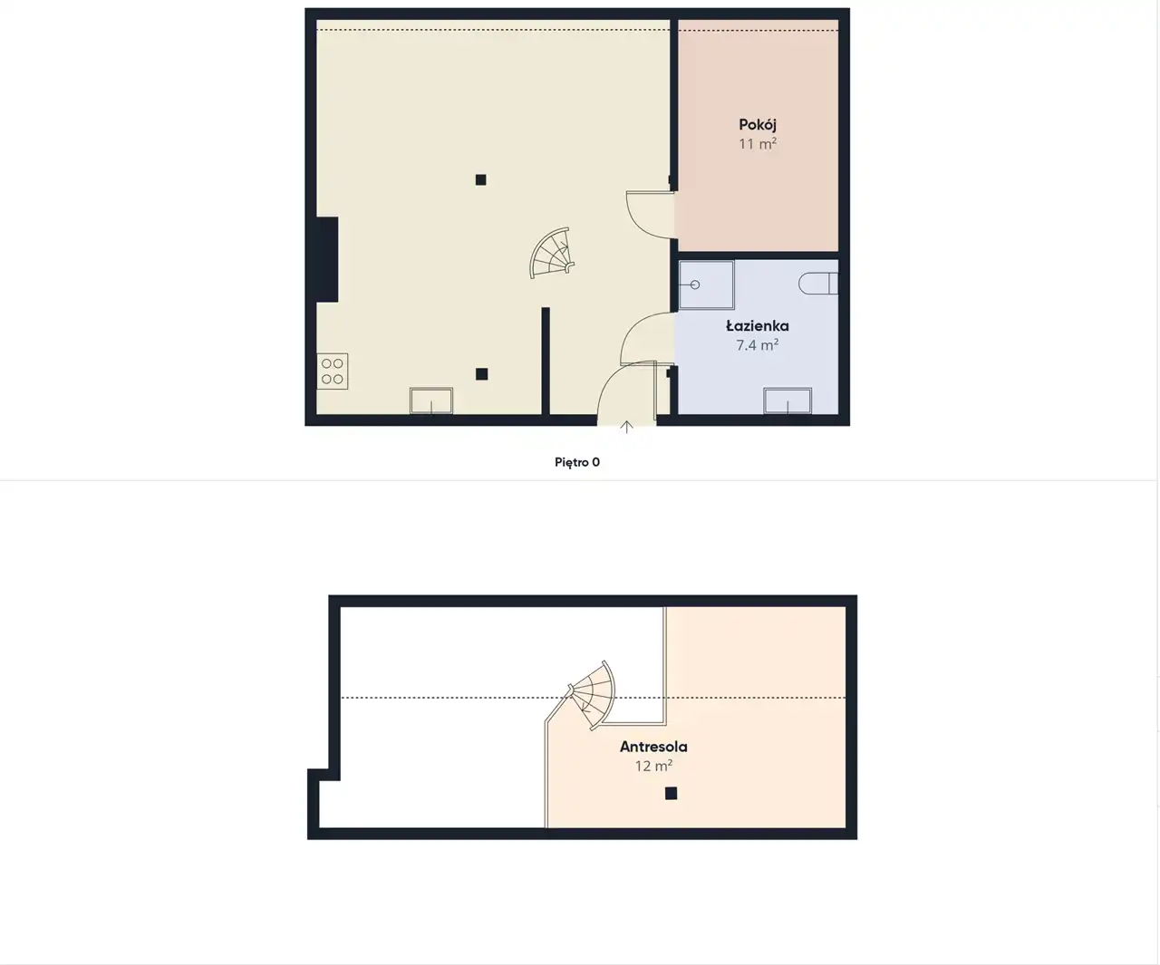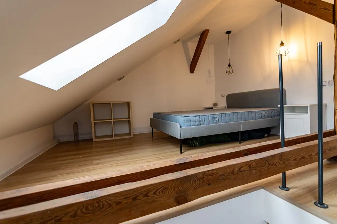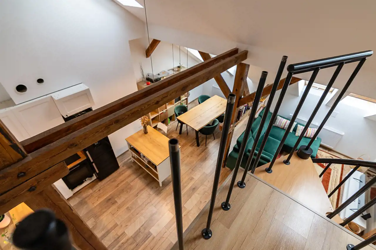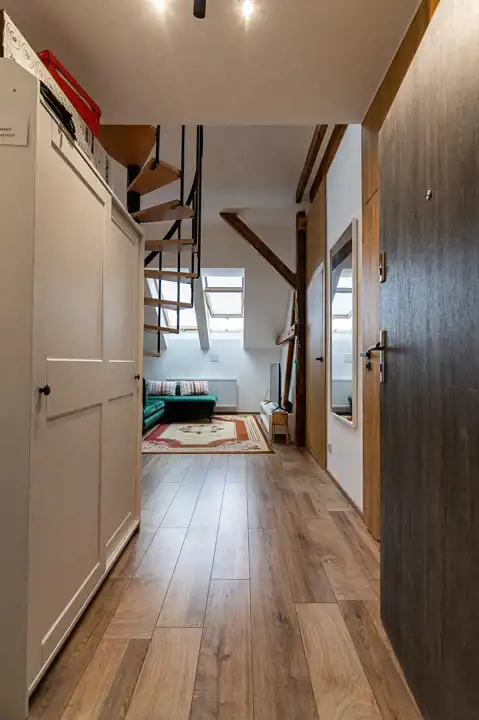 Antresola (pow. przypodłogowa ok. 12 m²) – idealna na dodatkową przestrzeń do pracy, sypialnię lub strefę relaksu