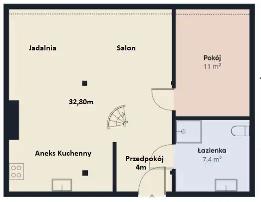 Salon z aneksem kuchennym i jadalnią – 32,80 m²