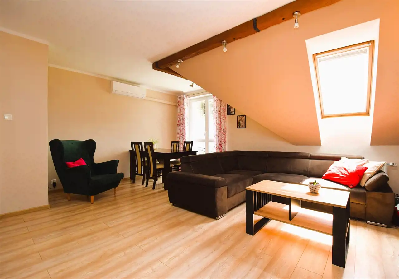 - pokój dzienny 23m2, z wyjściem na loggię; wyposażony w klimatyzator