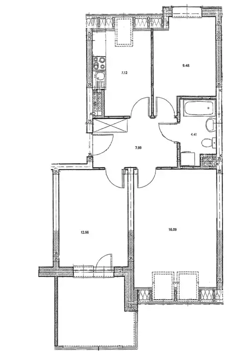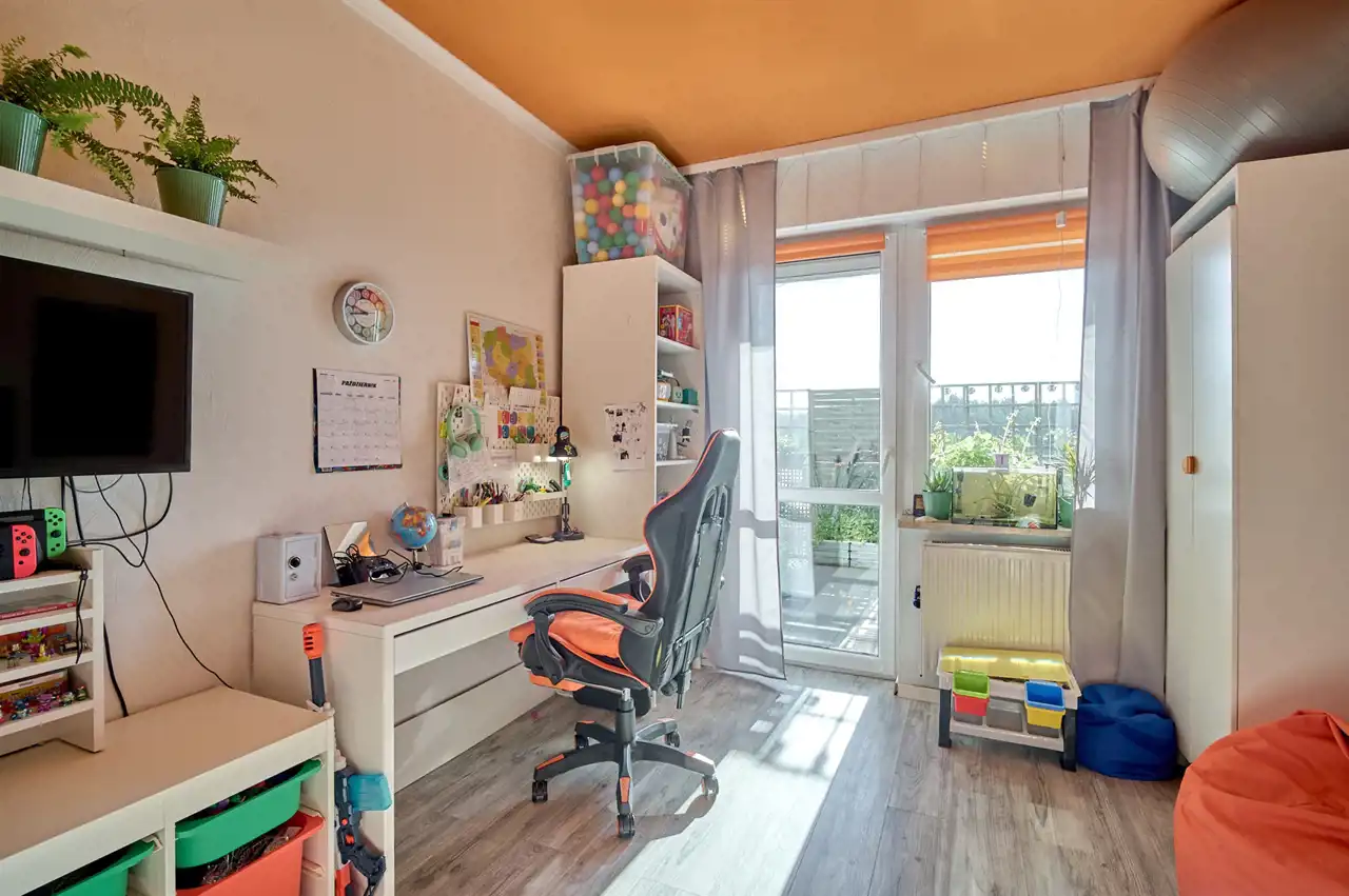 Przestrzeń i funkcjonalny układ. Trzy pokoje zapewniają komfort dla rodziny lub pary z dzieckiem. Salon o powierzchni 16,09 m² to miejsce idealne na wspólne chwile. Dwie sypialnie o powierzchniach 12,46 m² i 9,48 m² pozwalają na elastyczne wykorzystanie – np. pokój dziecięcy, gabinet lub pokój gościnny.