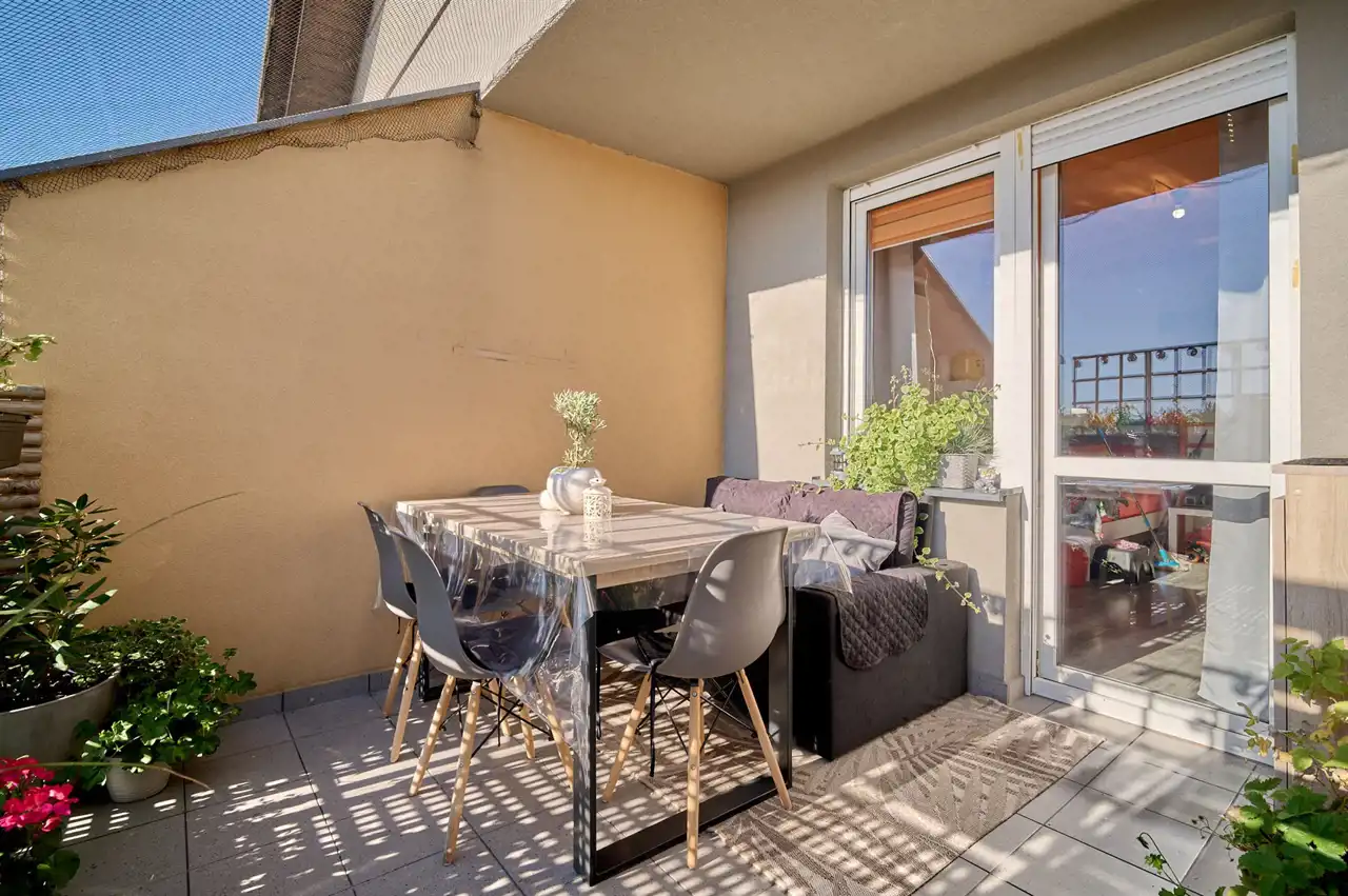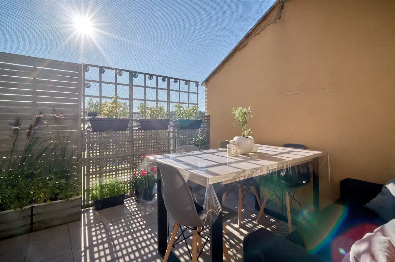 Taras jako przedłużenie mieszkania. Ten około 10 - metrowy taras to ogromna wartość - idealne miejsce na relaks, poranną kawę czy miniogród. W letnie dni wnętrze łączy się z naturą.