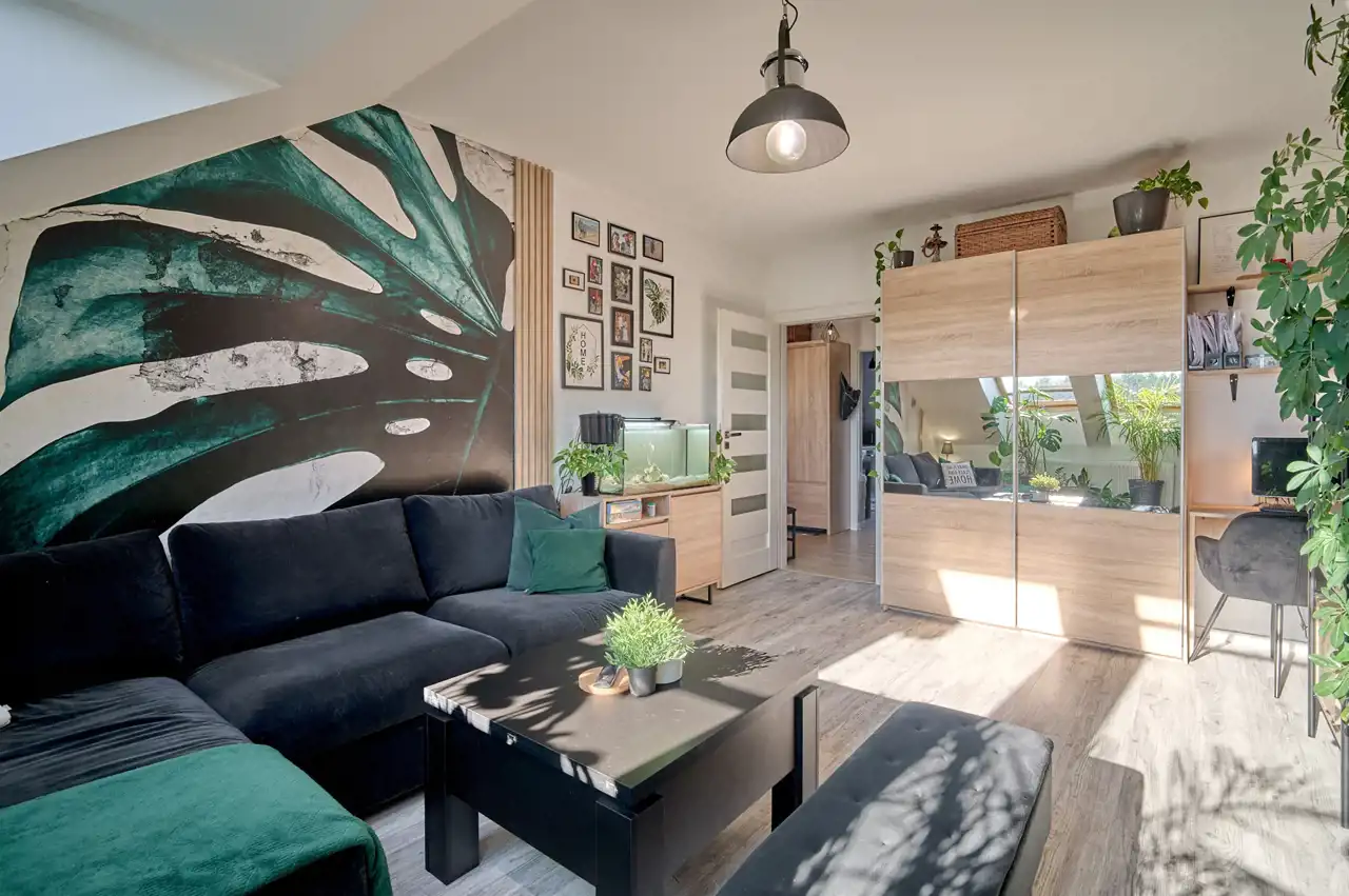 Tytułem oferty jest słoneczne, ustawne mieszkanie o następującym układzie pomieszczeń: