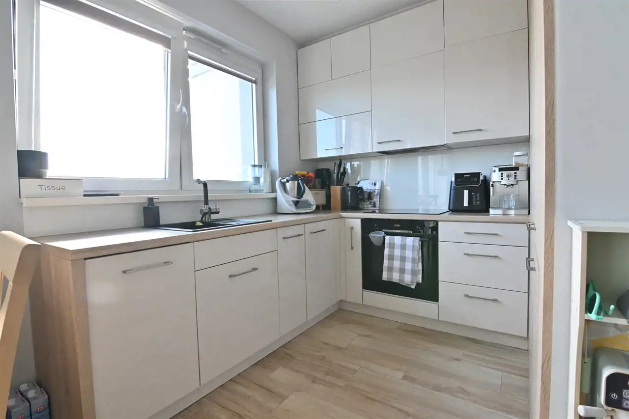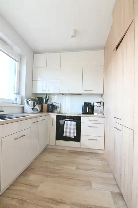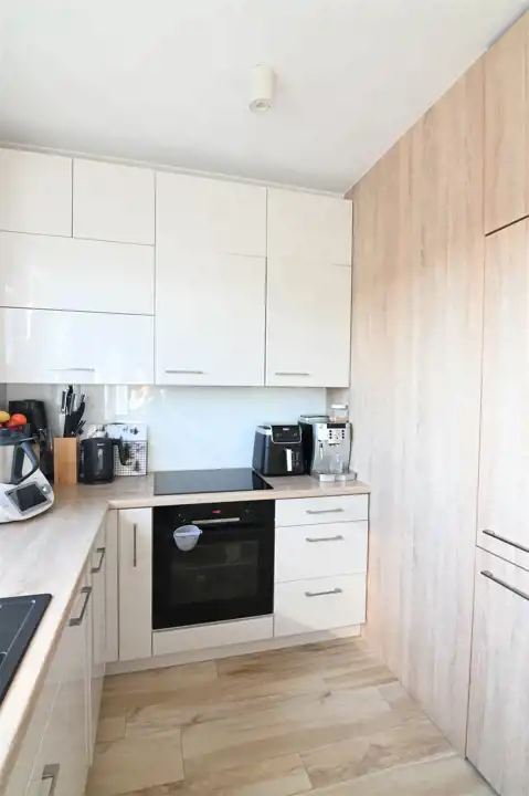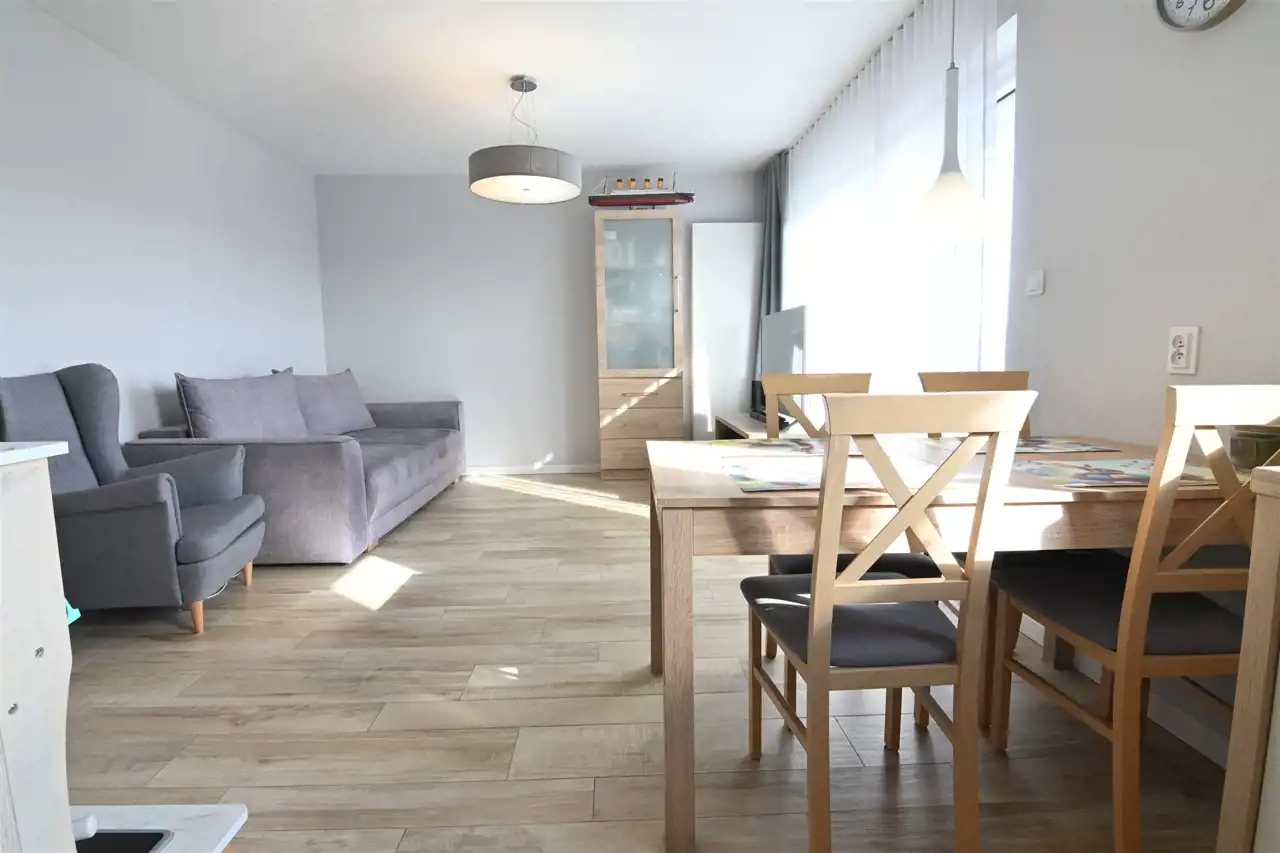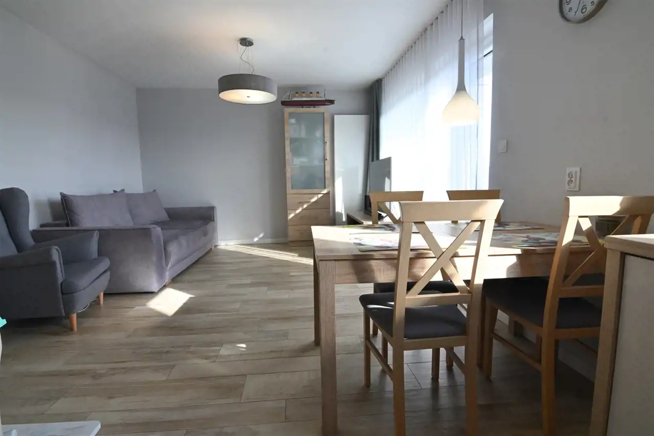Duże możliwości aranżacyjne — wyraźnie wydzielona część wypoczynkowa i jadalniana, a jednocześnie komfortowa kuchnia z pełnym wyposażeniem.