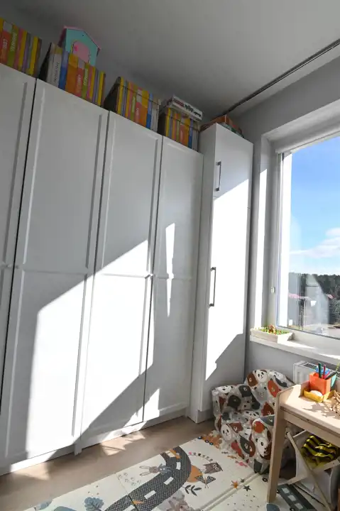 Dodatkowym atutem jest wyjście na balkon, który naturalnie powiększa przestrzeń w cieplejsze miesiące.