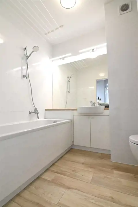 - Media Ogrzewanie: C.O. miejskie; Woda: ciepła - sieć; Gaz: brak
