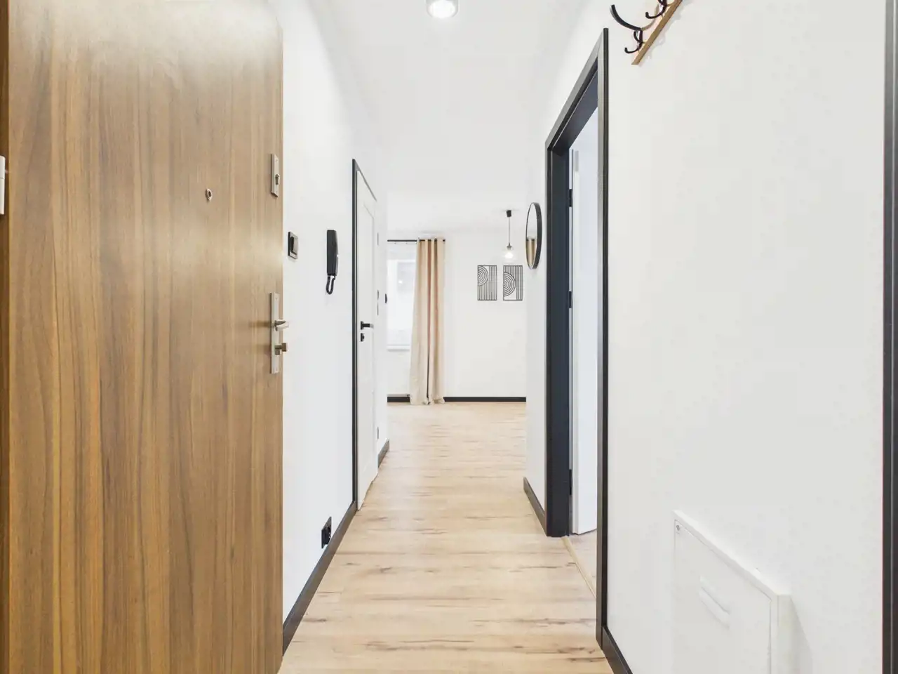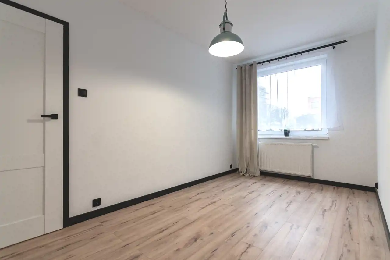 Mieszkanie przeszło remont – wykonano malowanie ścian, położono nowe panele podłogowe wraz z listwami przypodłogowymi oraz zamontowano nowe drzwi wewnętrzne. W salonie i sypialni zainstalowane są rolety zewnętrzne, zwiększające komfort i bezpieczeństwo.