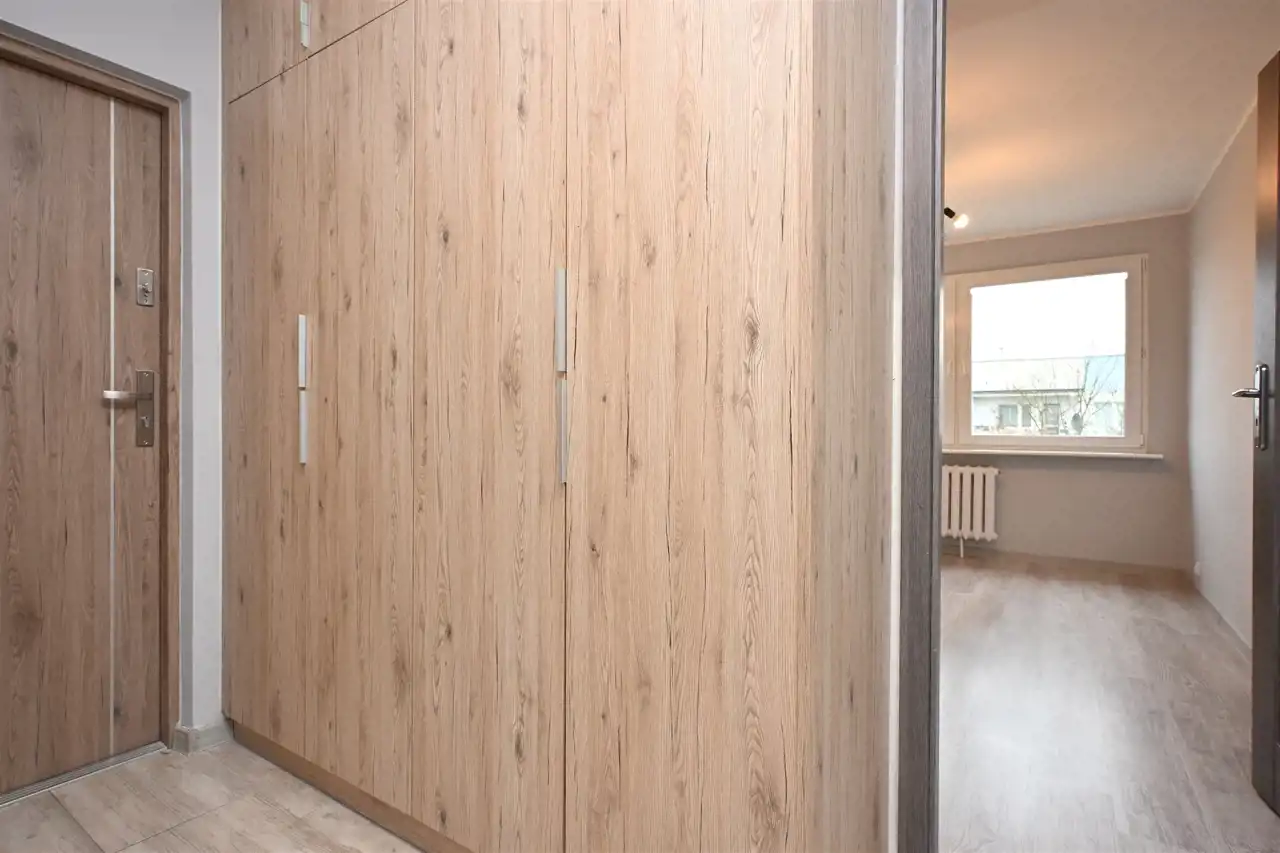 - trzy pokoje/sypialnie o pow. ok. 12m2 i 2 x 9m2. W jednym z pokoi szafa, regał.